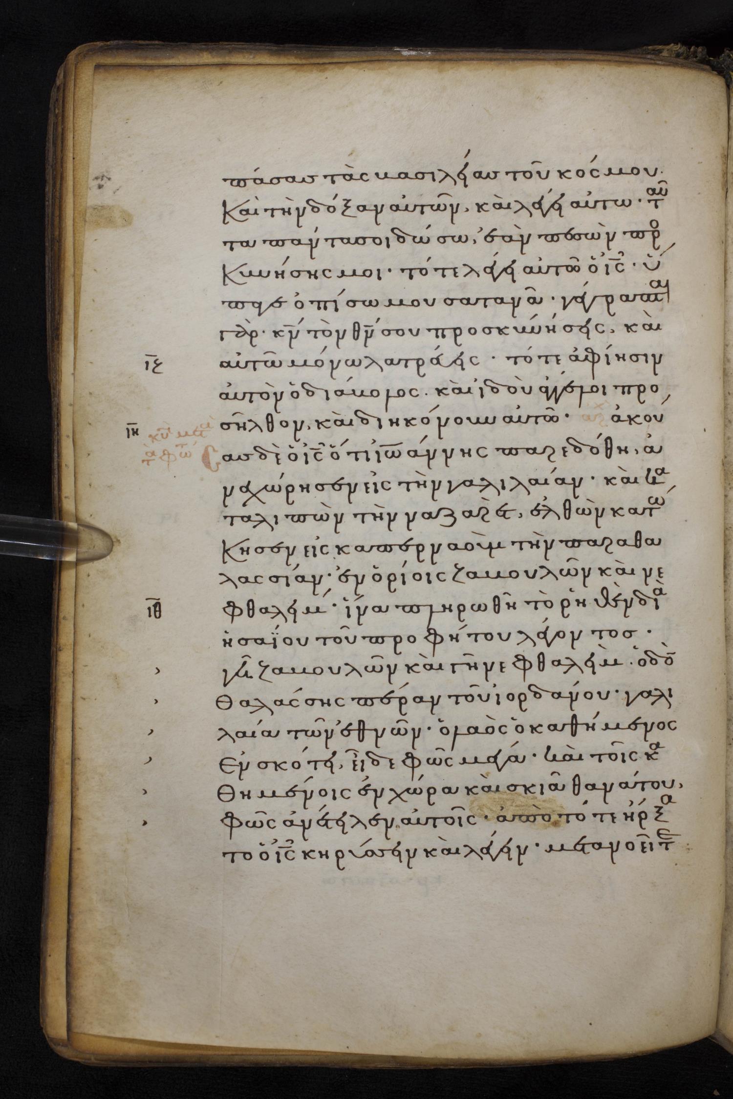 Thirteenth century minuscule of the Gospels on parchment; 237 leaves, 1 column, 23 lines per column. Images were taken at the National Library of Greece in Athens.