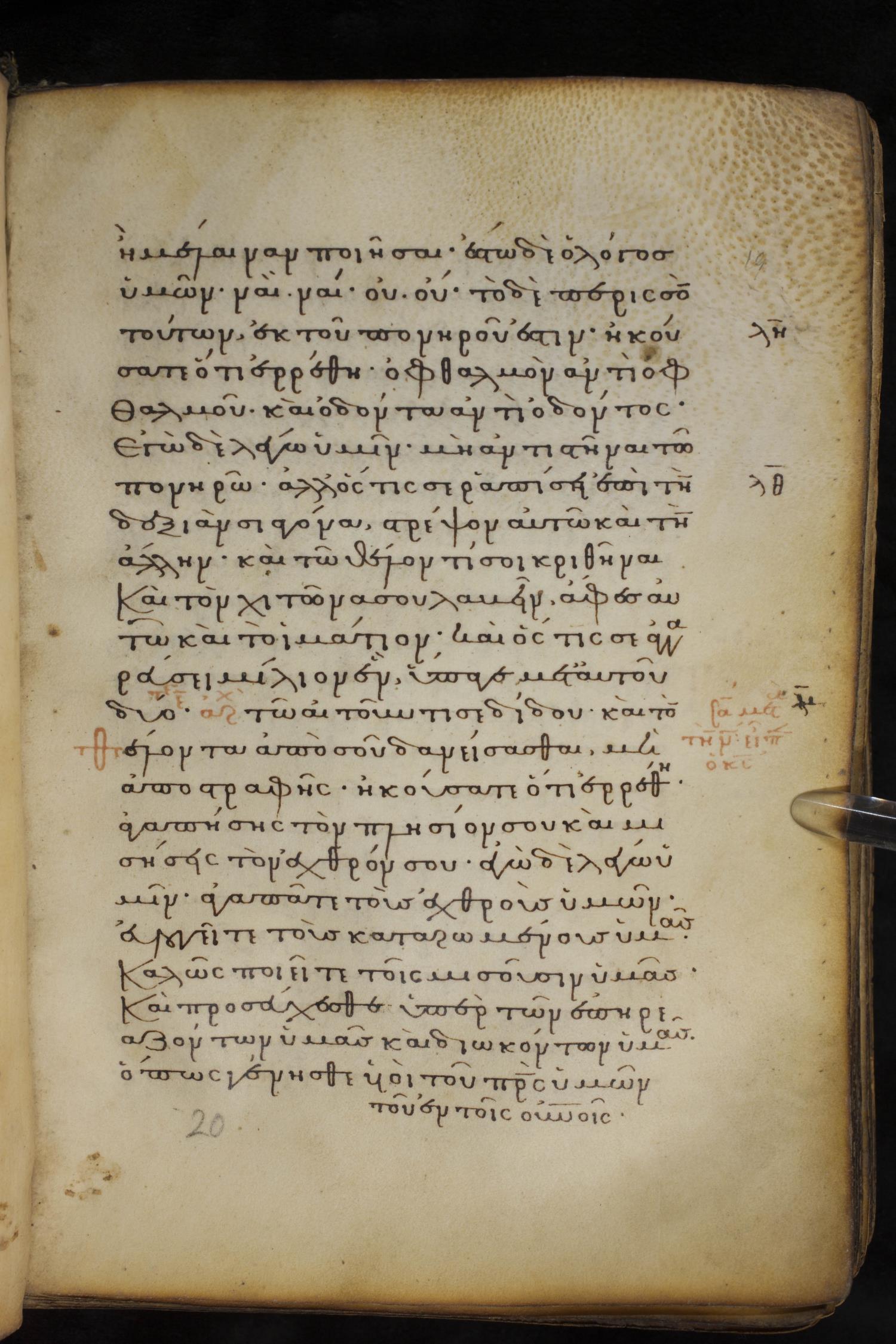 Thirteenth century minuscule of the Gospels on parchment; 237 leaves, 1 column, 23 lines per column. Images were taken at the National Library of Greece in Athens.