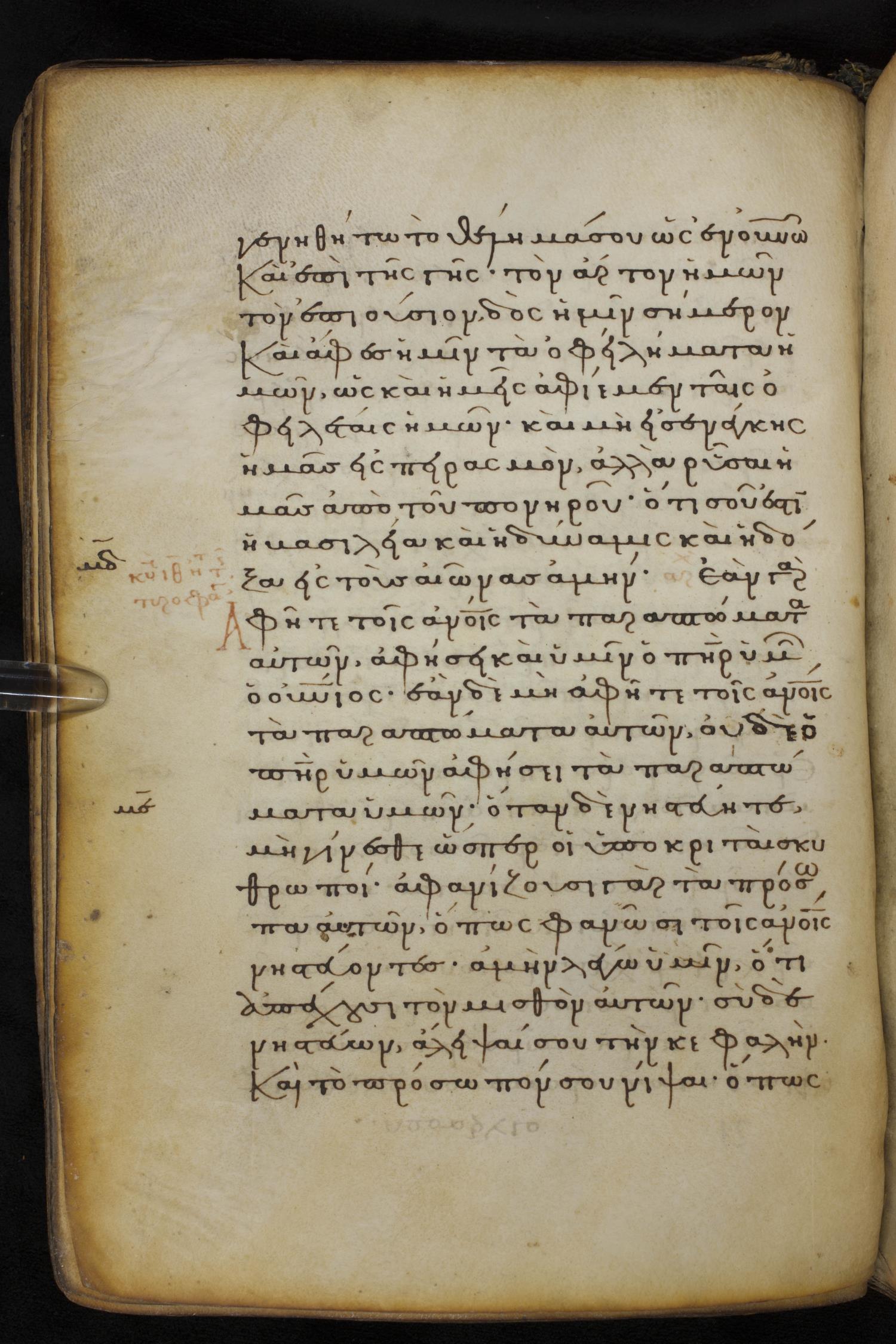 Thirteenth century minuscule of the Gospels on parchment; 237 leaves, 1 column, 23 lines per column. Images were taken at the National Library of Greece in Athens.