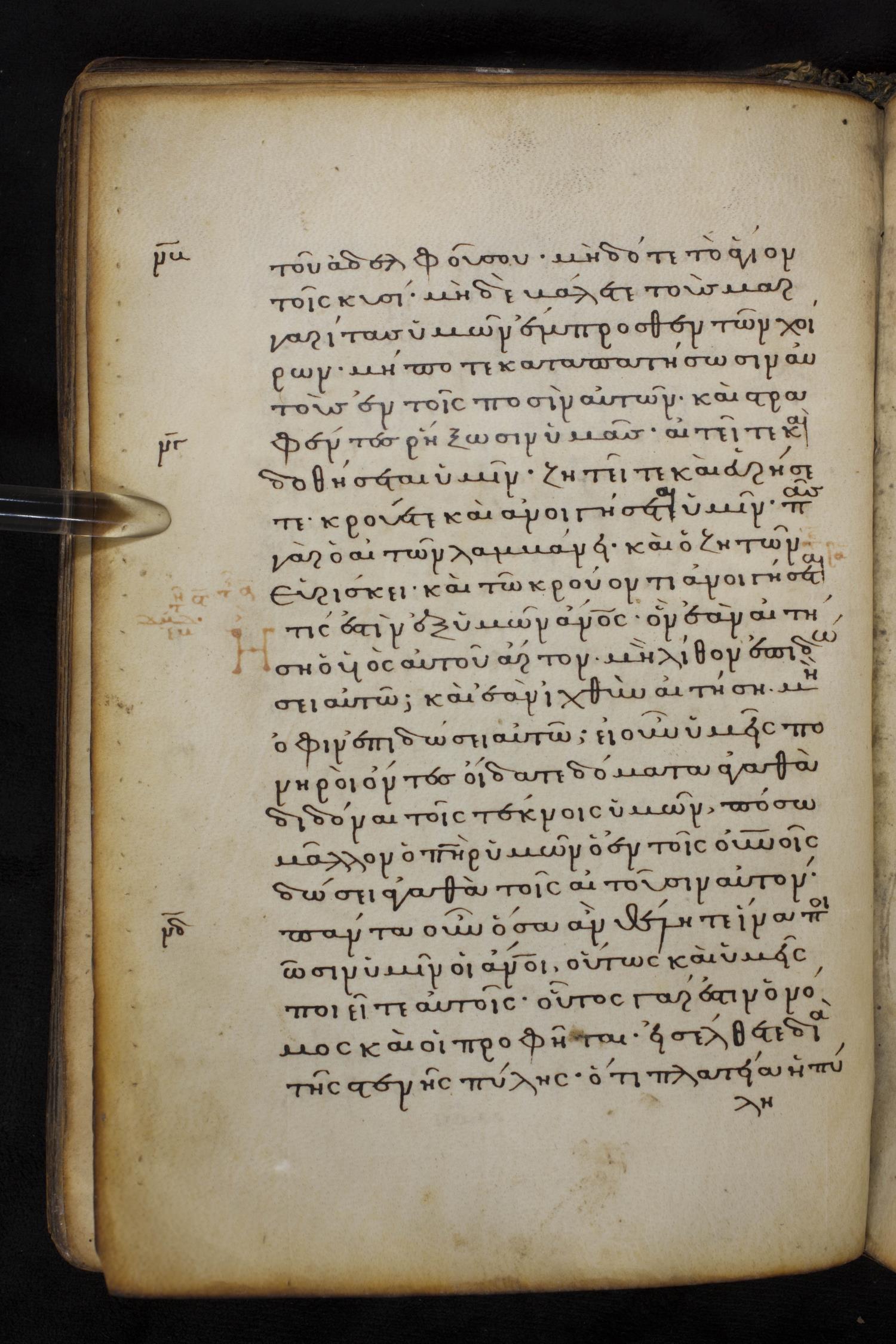 Thirteenth century minuscule of the Gospels on parchment; 237 leaves, 1 column, 23 lines per column. Images were taken at the National Library of Greece in Athens.