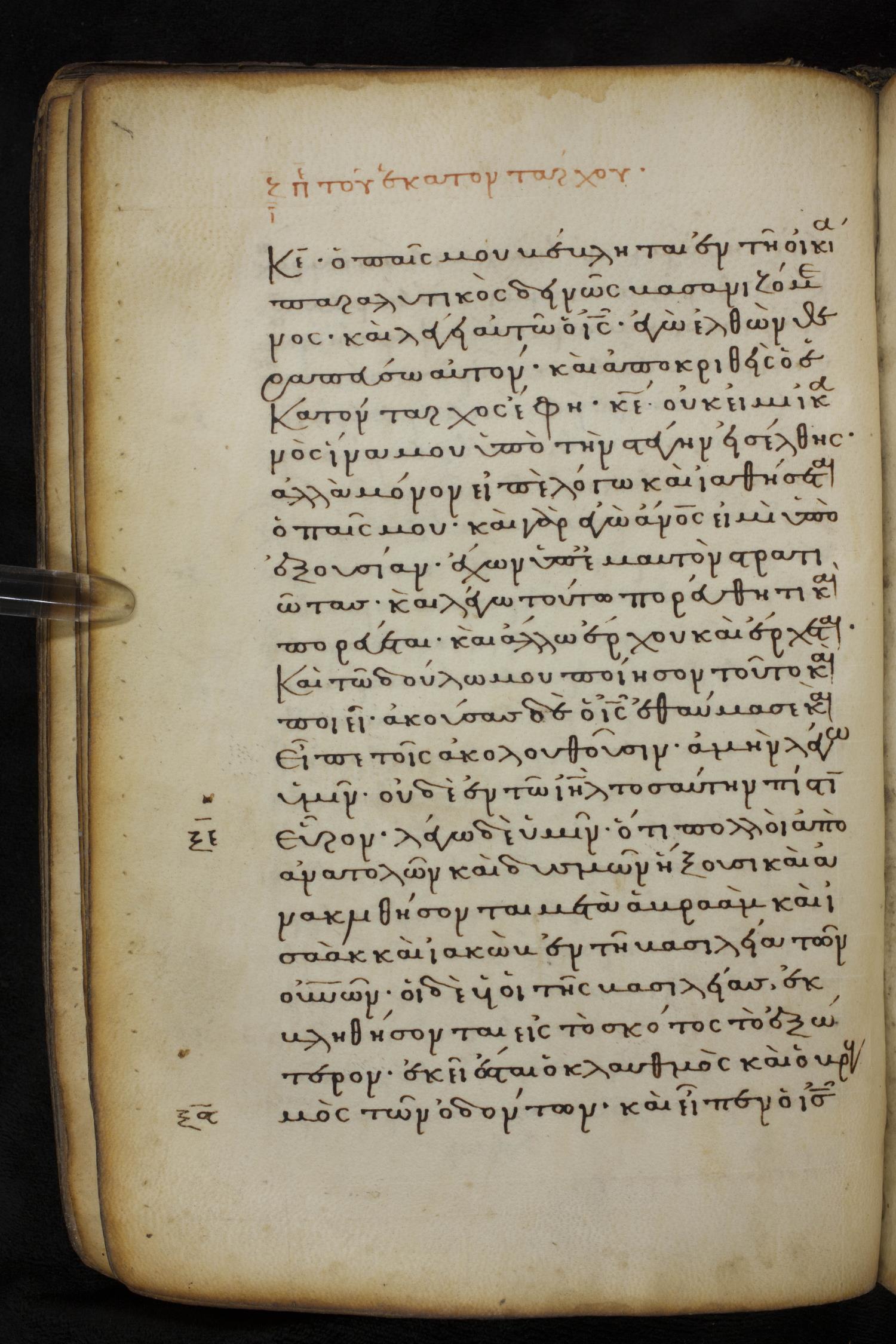 Thirteenth century minuscule of the Gospels on parchment; 237 leaves, 1 column, 23 lines per column. Images were taken at the National Library of Greece in Athens.
