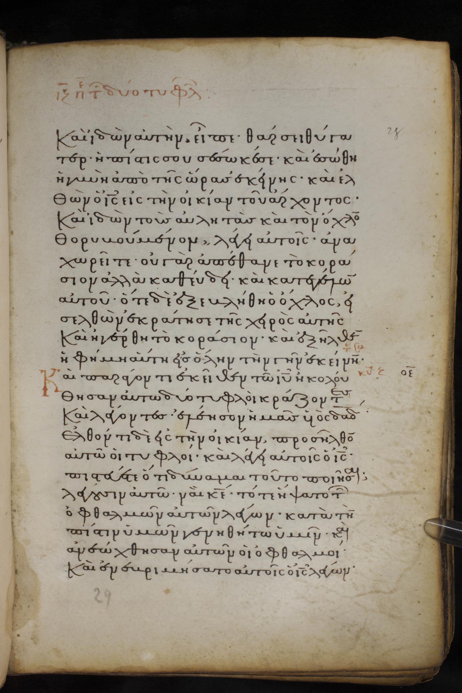 Thirteenth century minuscule of the Gospels on parchment; 237 leaves, 1 column, 23 lines per column. Images were taken at the National Library of Greece in Athens.