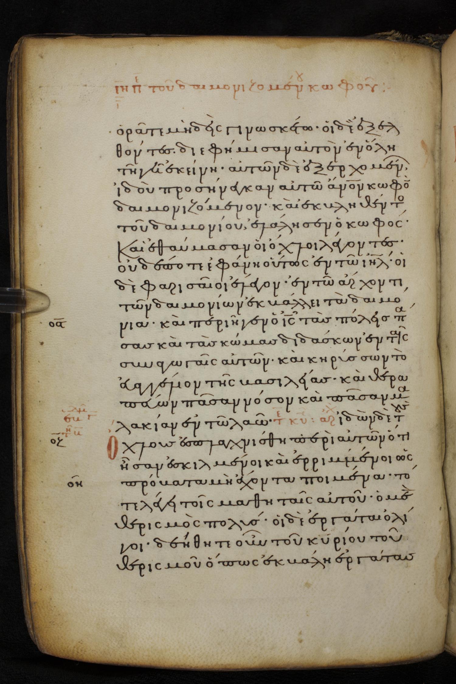 Thirteenth century minuscule of the Gospels on parchment; 237 leaves, 1 column, 23 lines per column. Images were taken at the National Library of Greece in Athens.