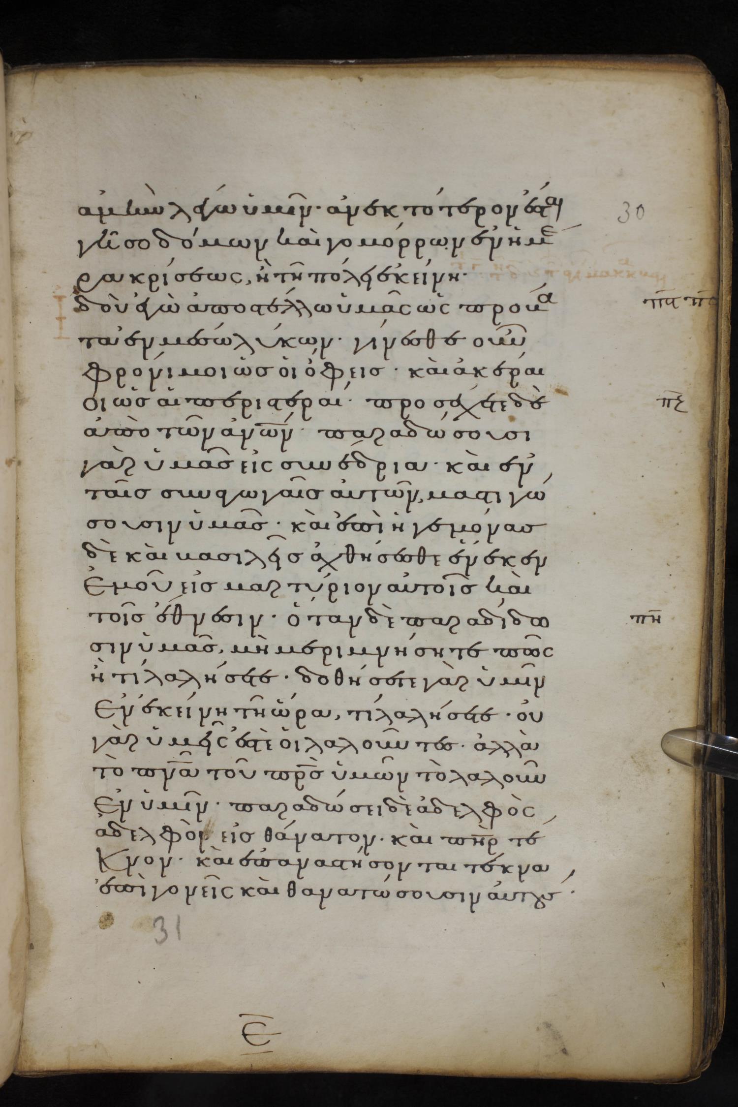Thirteenth century minuscule of the Gospels on parchment; 237 leaves, 1 column, 23 lines per column. Images were taken at the National Library of Greece in Athens.