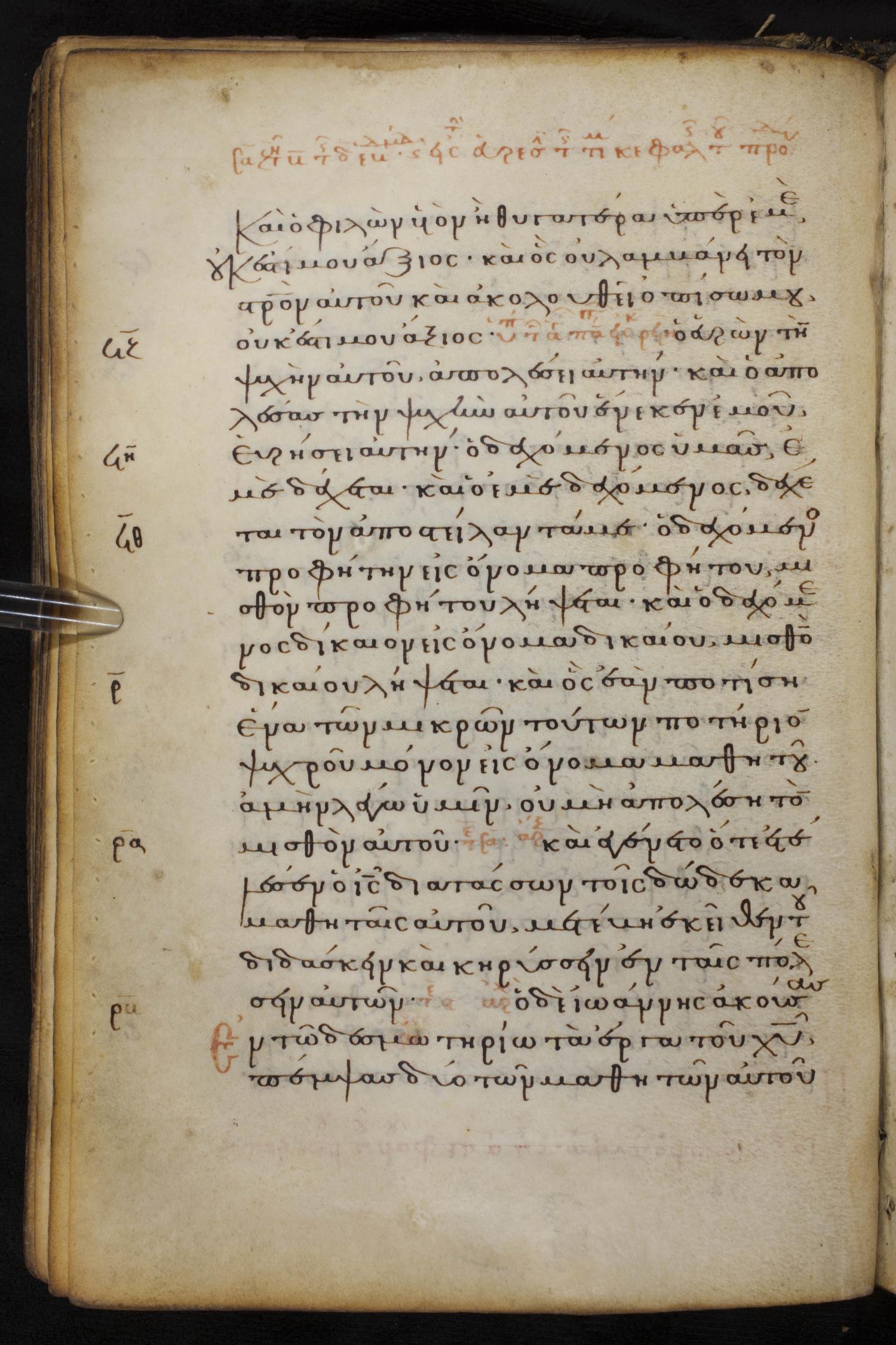 Thirteenth century minuscule of the Gospels on parchment; 237 leaves, 1 column, 23 lines per column. Images were taken at the National Library of Greece in Athens.