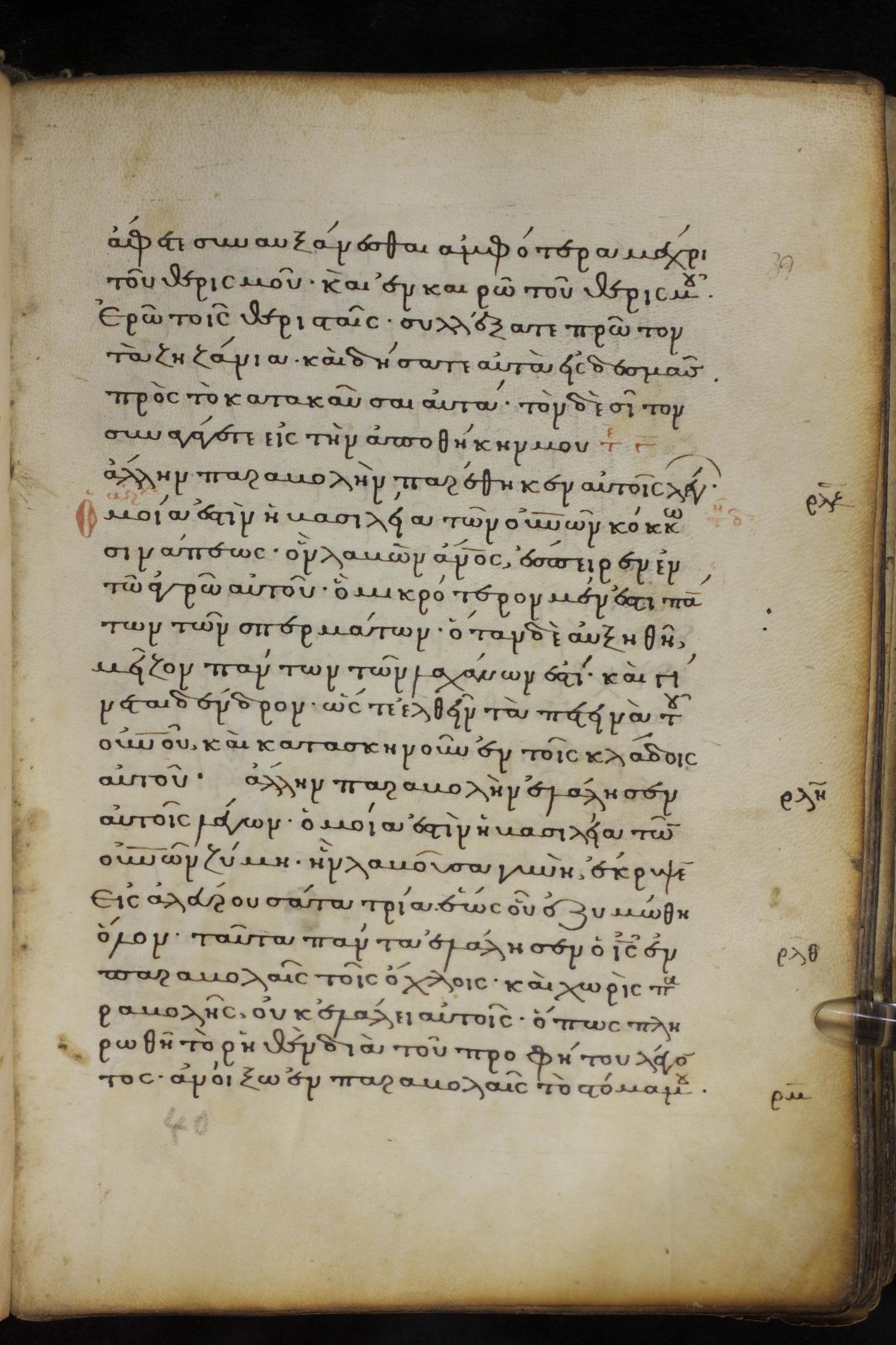 Thirteenth century minuscule of the Gospels on parchment; 237 leaves, 1 column, 23 lines per column. Images were taken at the National Library of Greece in Athens.