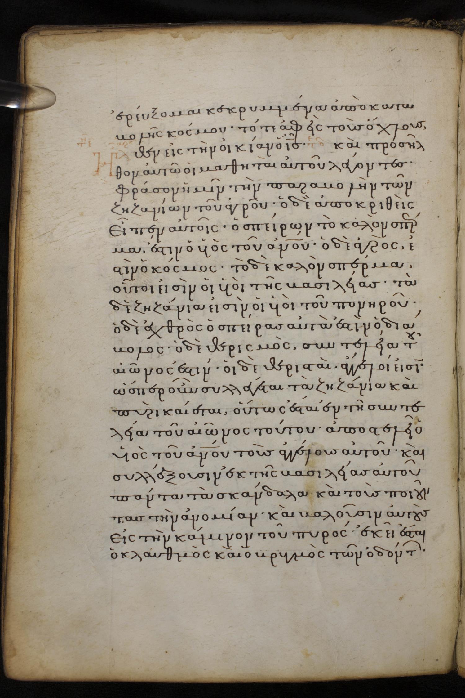 Thirteenth century minuscule of the Gospels on parchment; 237 leaves, 1 column, 23 lines per column. Images were taken at the National Library of Greece in Athens.