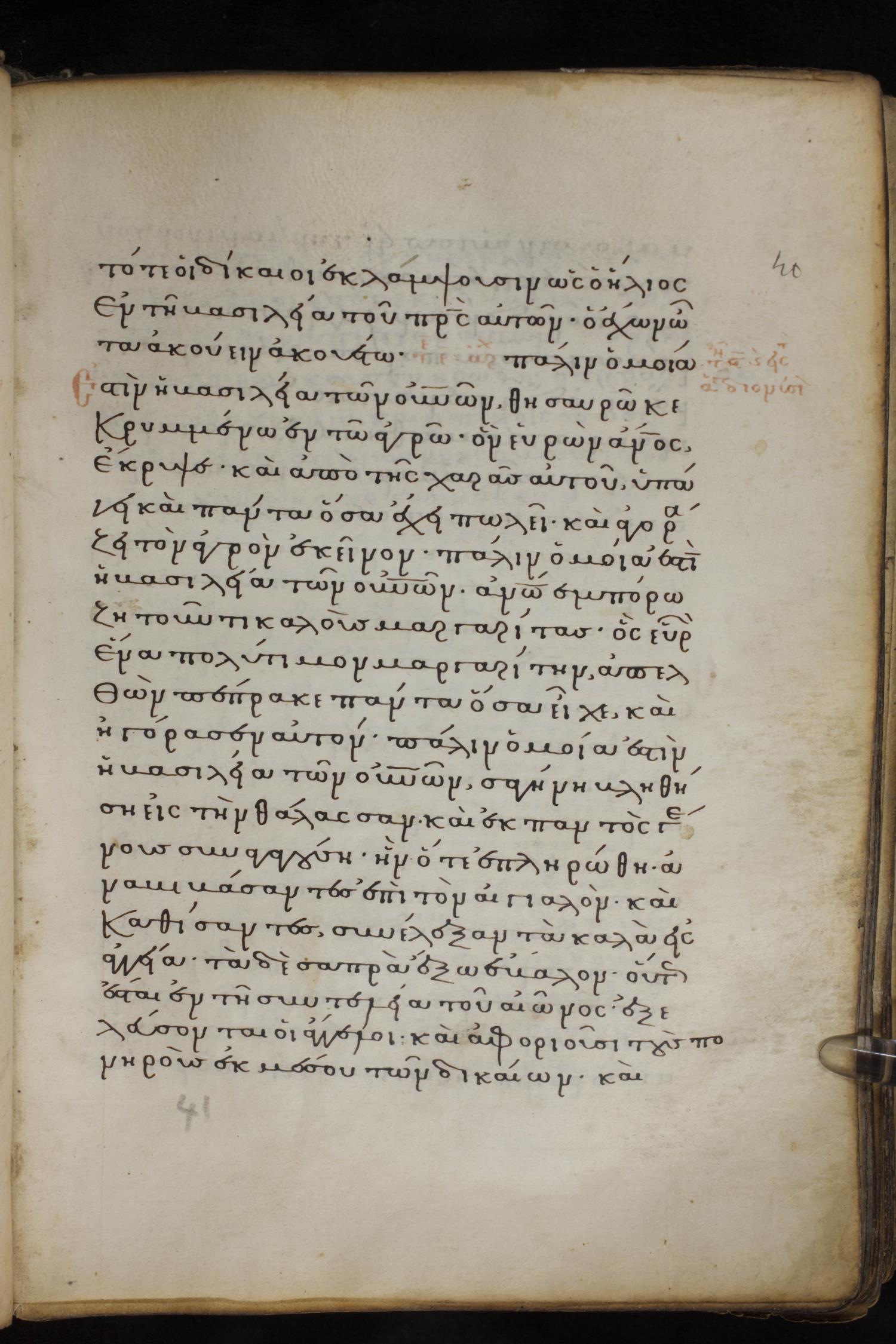 Thirteenth century minuscule of the Gospels on parchment; 237 leaves, 1 column, 23 lines per column. Images were taken at the National Library of Greece in Athens.