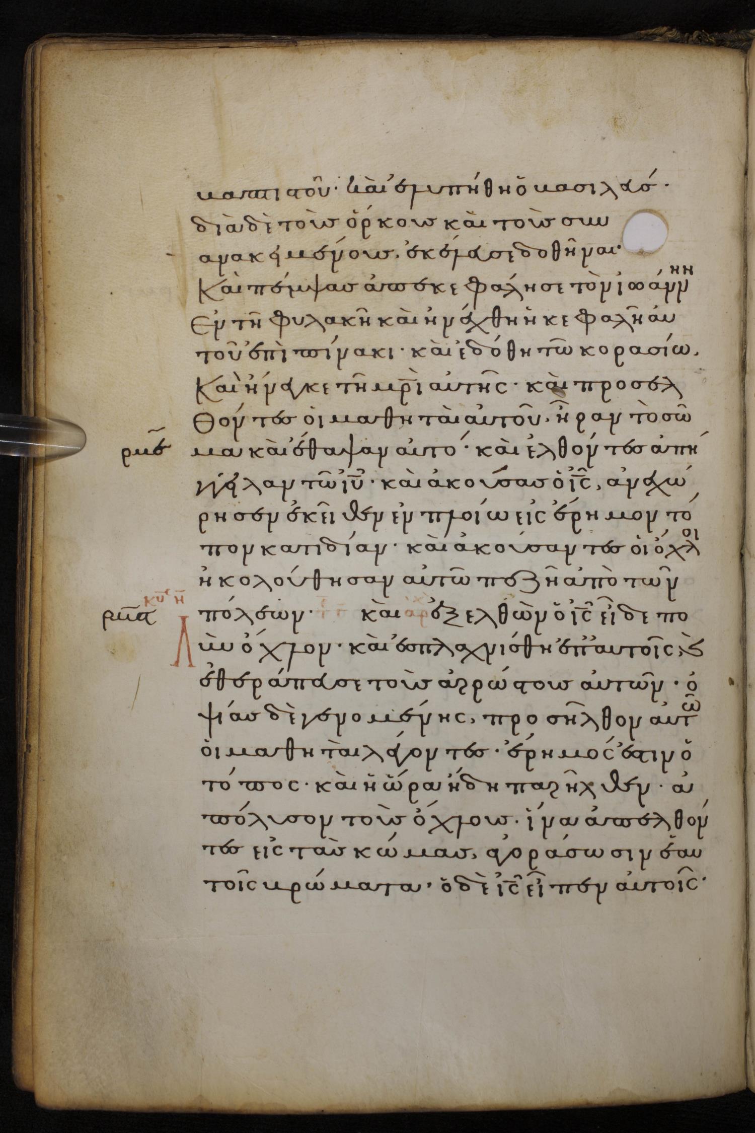 Thirteenth century minuscule of the Gospels on parchment; 237 leaves, 1 column, 23 lines per column. Images were taken at the National Library of Greece in Athens.