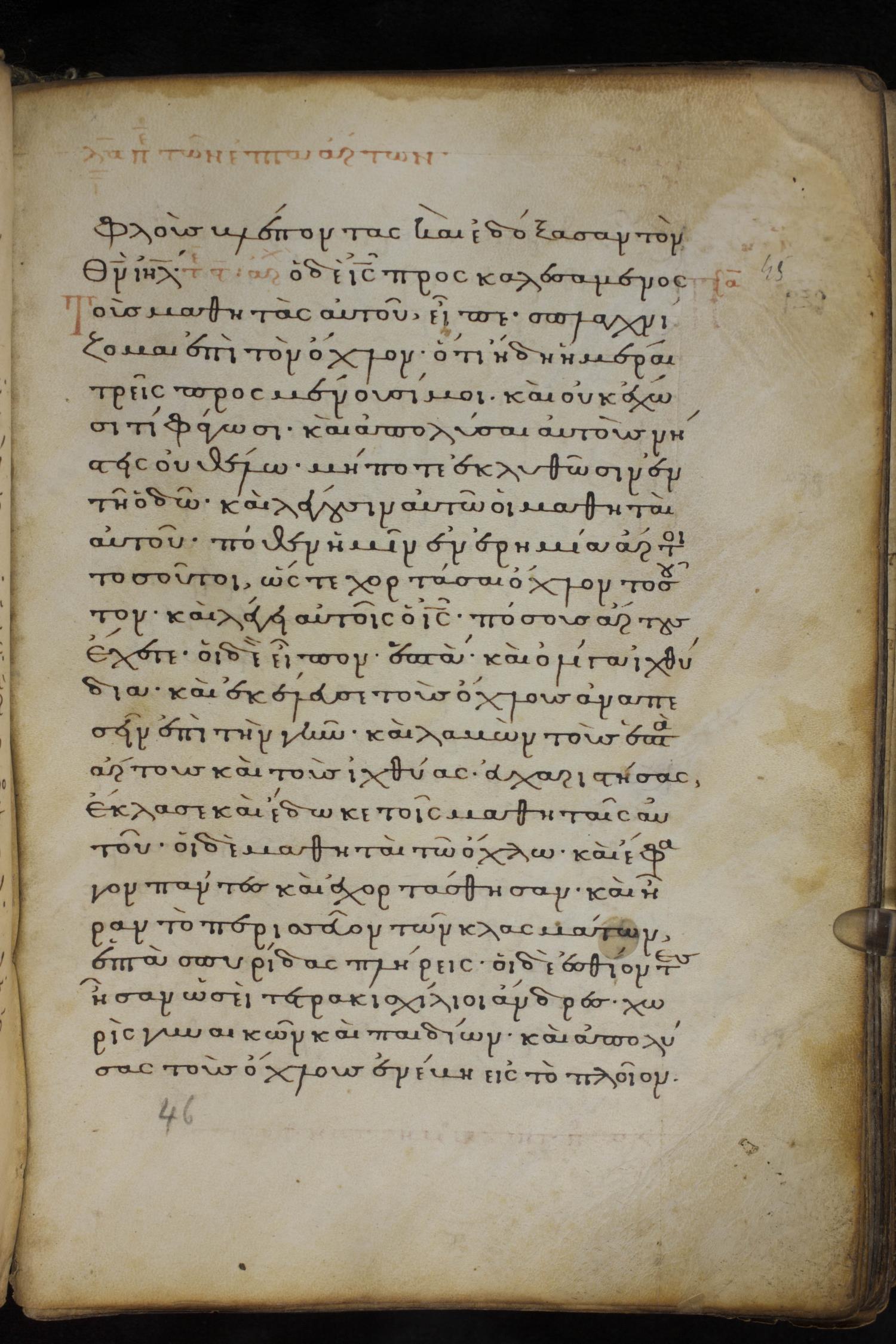Thirteenth century minuscule of the Gospels on parchment; 237 leaves, 1 column, 23 lines per column. Images were taken at the National Library of Greece in Athens.