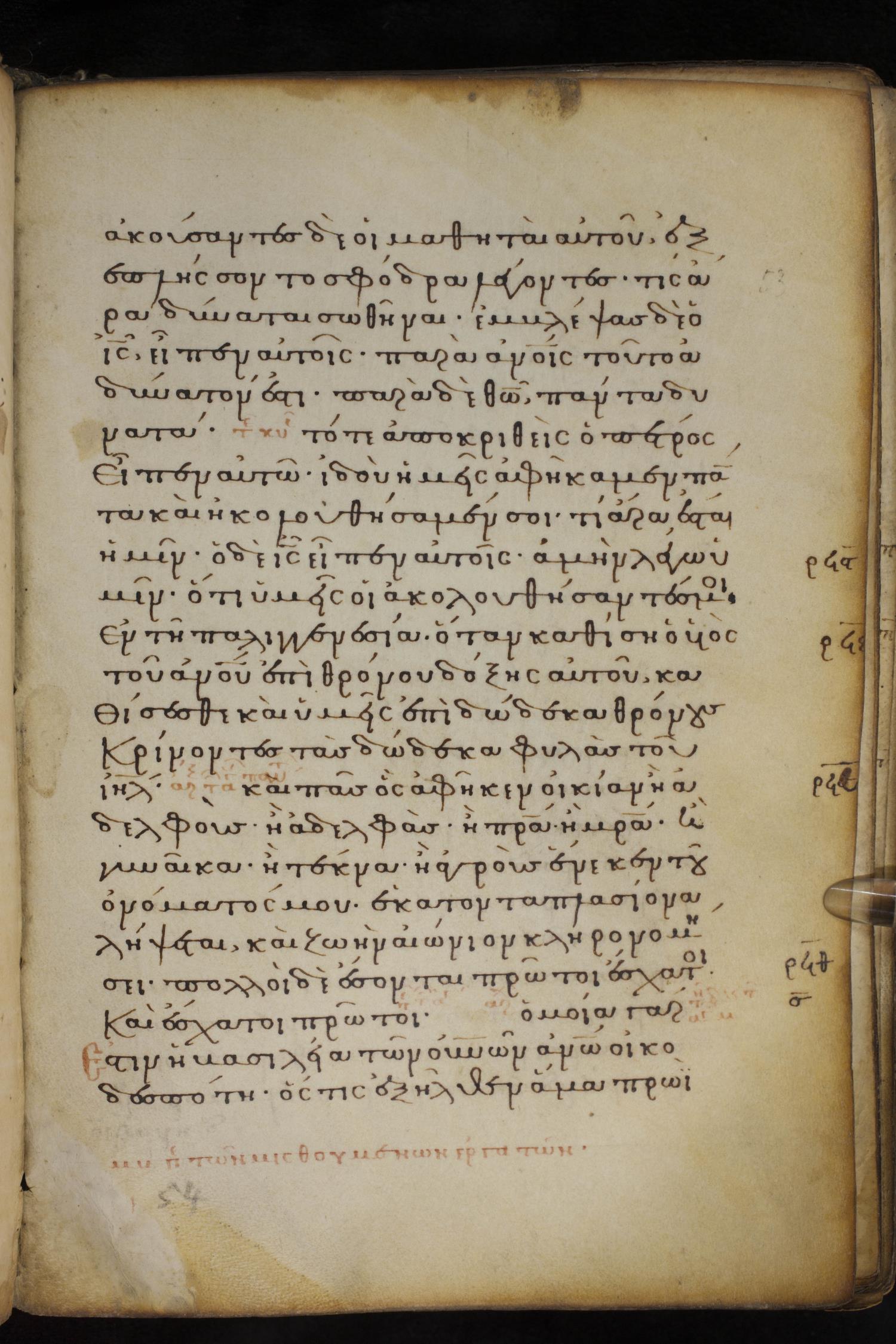 Thirteenth century minuscule of the Gospels on parchment; 237 leaves, 1 column, 23 lines per column. Images were taken at the National Library of Greece in Athens.