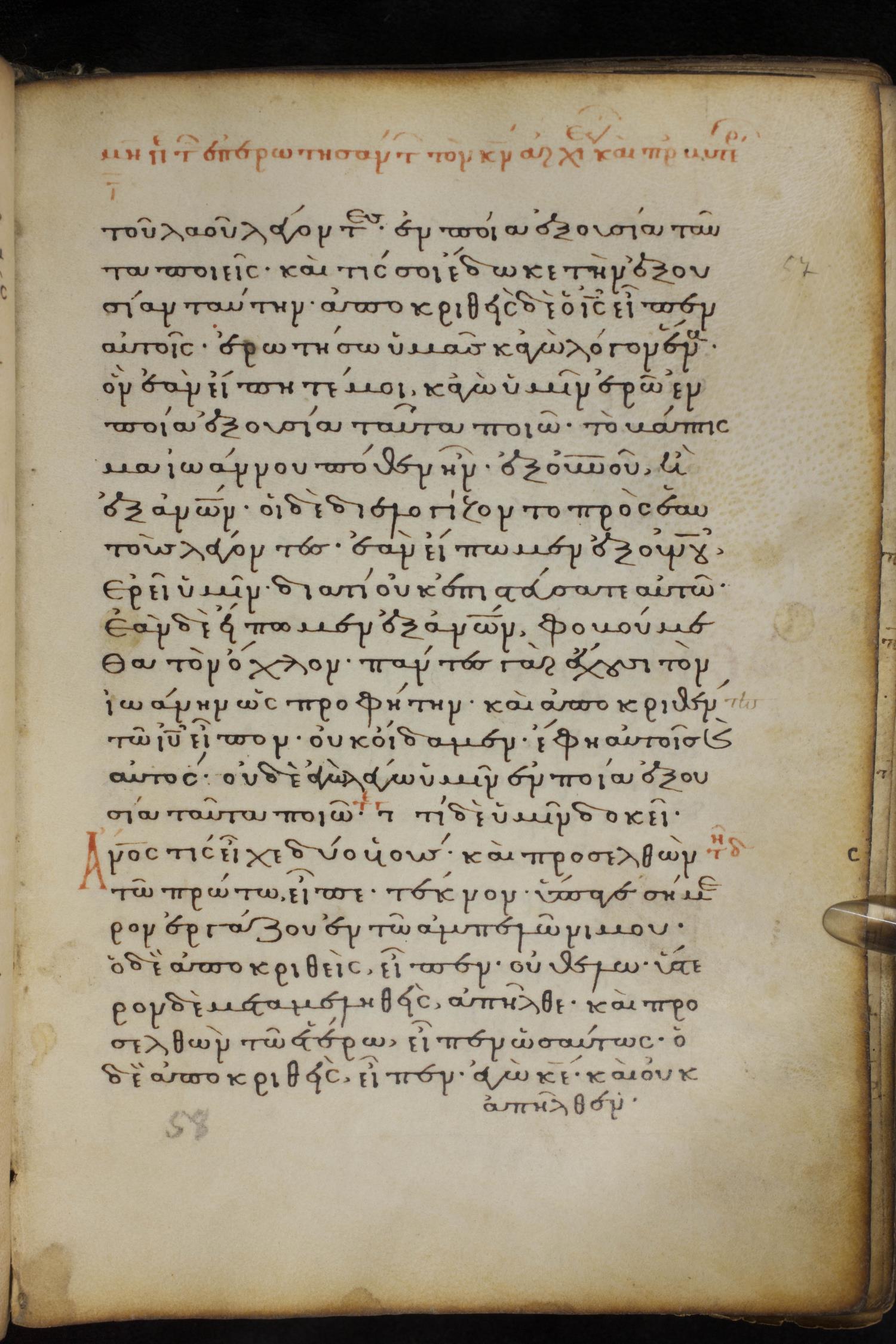 Thirteenth century minuscule of the Gospels on parchment; 237 leaves, 1 column, 23 lines per column. Images were taken at the National Library of Greece in Athens.