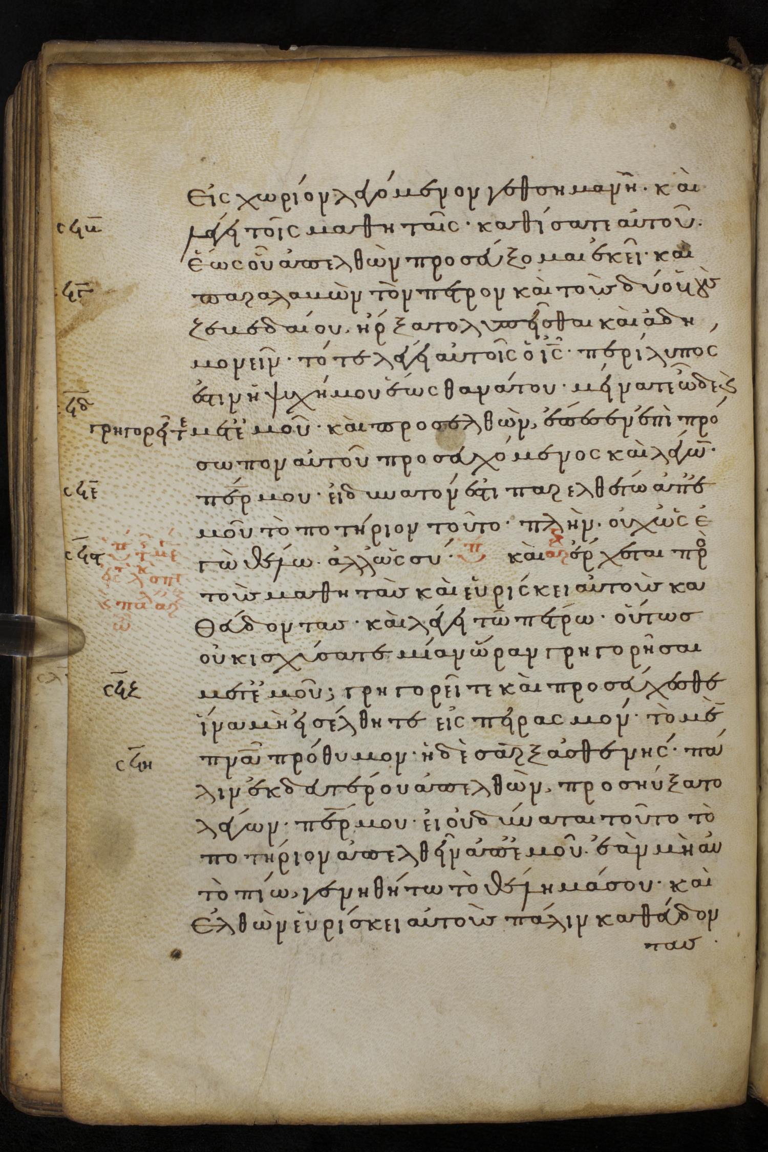 Thirteenth century minuscule of the Gospels on parchment; 237 leaves, 1 column, 23 lines per column. Images were taken at the National Library of Greece in Athens.