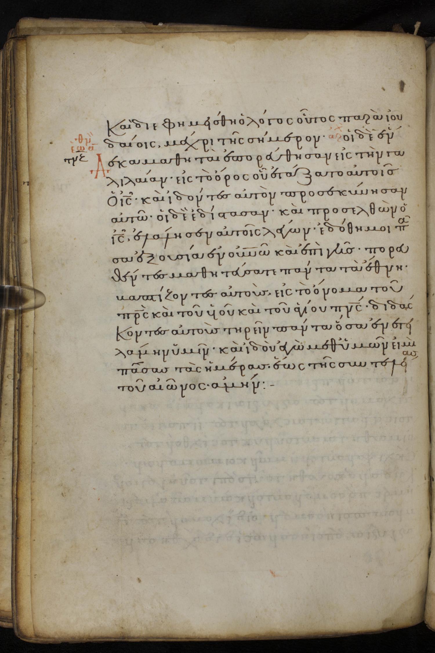 Thirteenth century minuscule of the Gospels on parchment; 237 leaves, 1 column, 23 lines per column. Images were taken at the National Library of Greece in Athens.