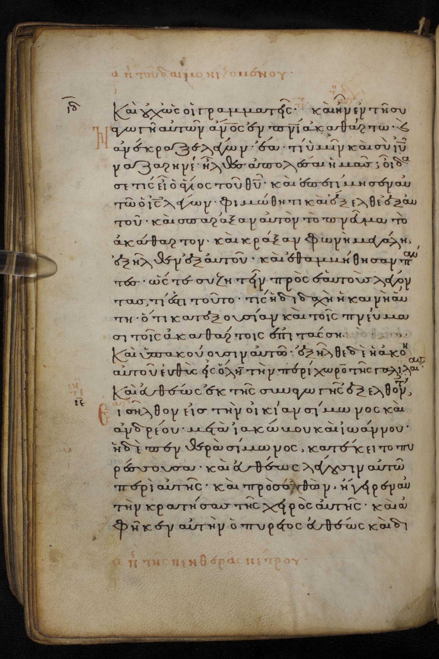 Thirteenth century minuscule of the Gospels on parchment; 237 leaves, 1 column, 23 lines per column. Images were taken at the National Library of Greece in Athens.