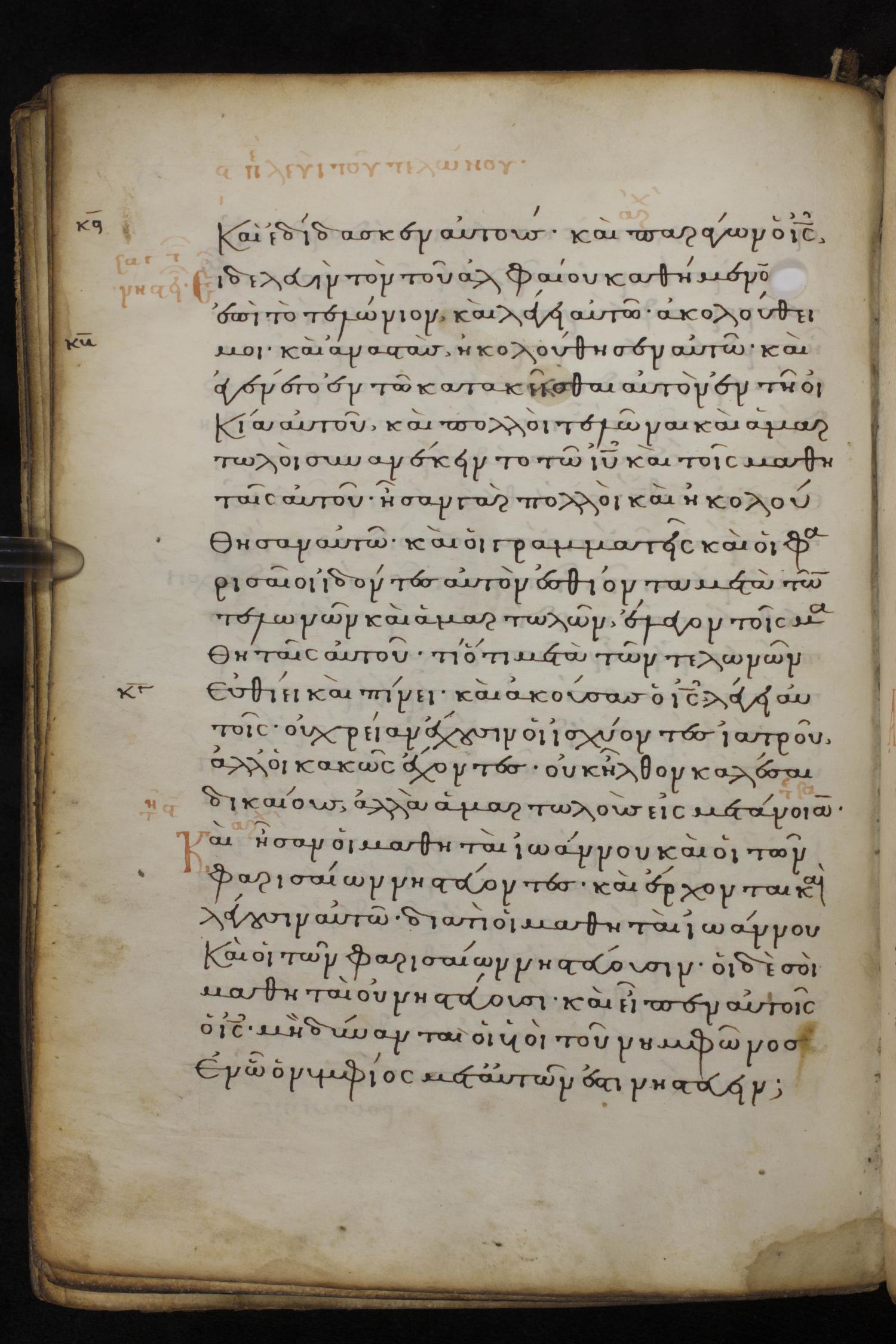 Thirteenth century minuscule of the Gospels on parchment; 237 leaves, 1 column, 23 lines per column. Images were taken at the National Library of Greece in Athens.