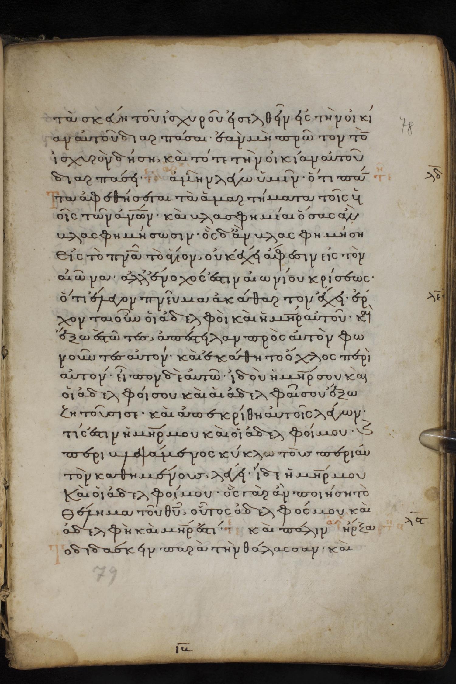 Thirteenth century minuscule of the Gospels on parchment; 237 leaves, 1 column, 23 lines per column. Images were taken at the National Library of Greece in Athens.