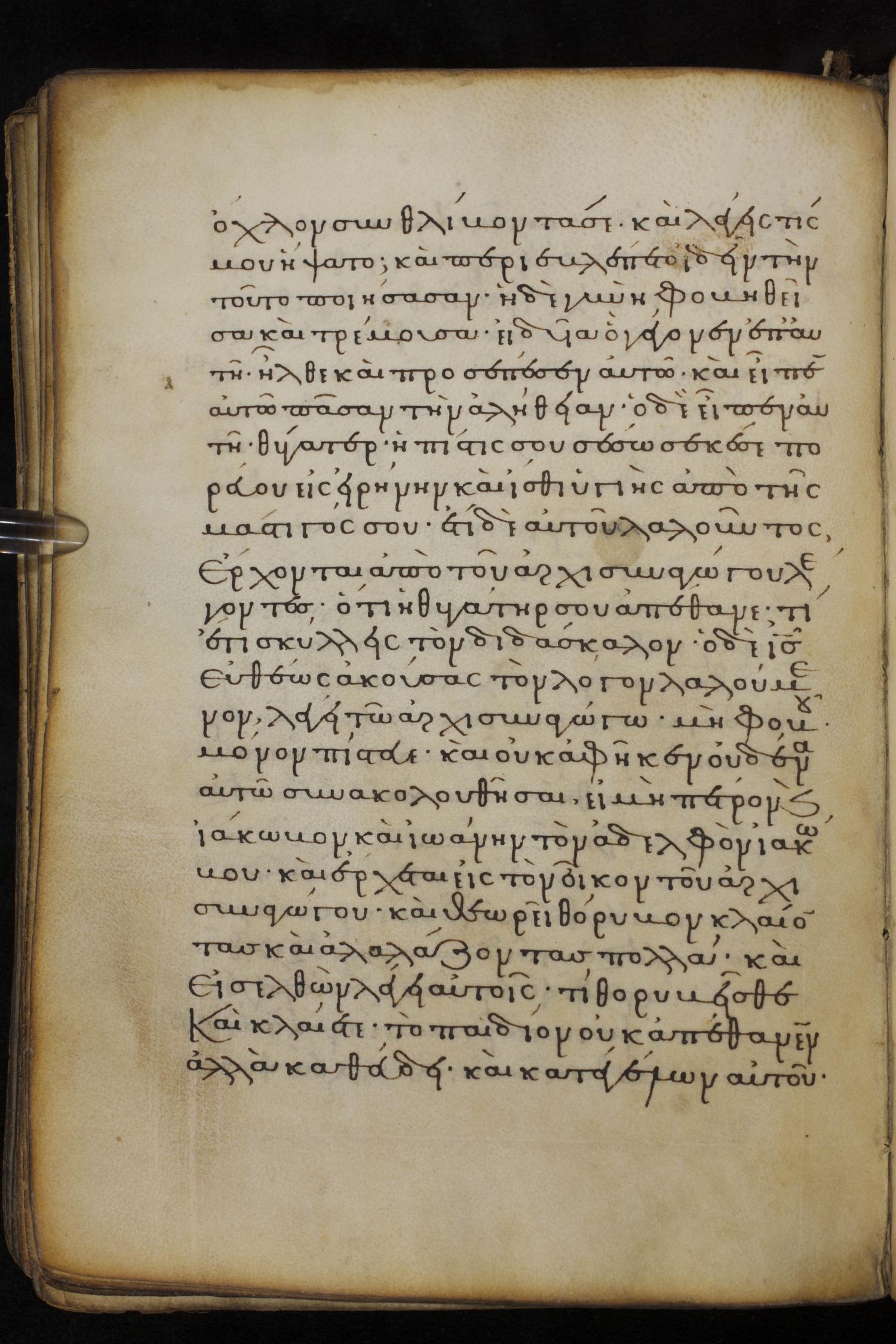 Thirteenth century minuscule of the Gospels on parchment; 237 leaves, 1 column, 23 lines per column. Images were taken at the National Library of Greece in Athens.