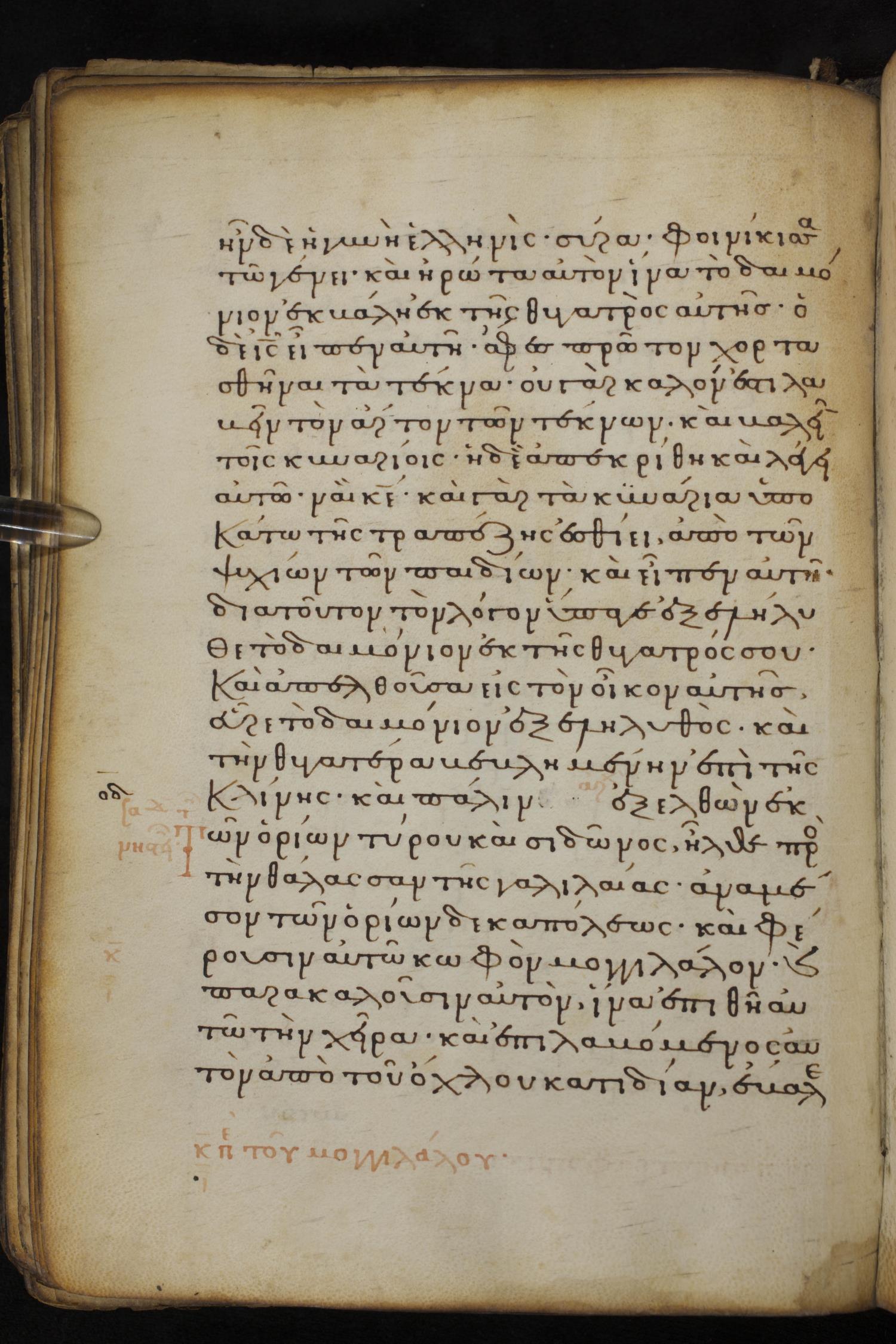Thirteenth century minuscule of the Gospels on parchment; 237 leaves, 1 column, 23 lines per column. Images were taken at the National Library of Greece in Athens.