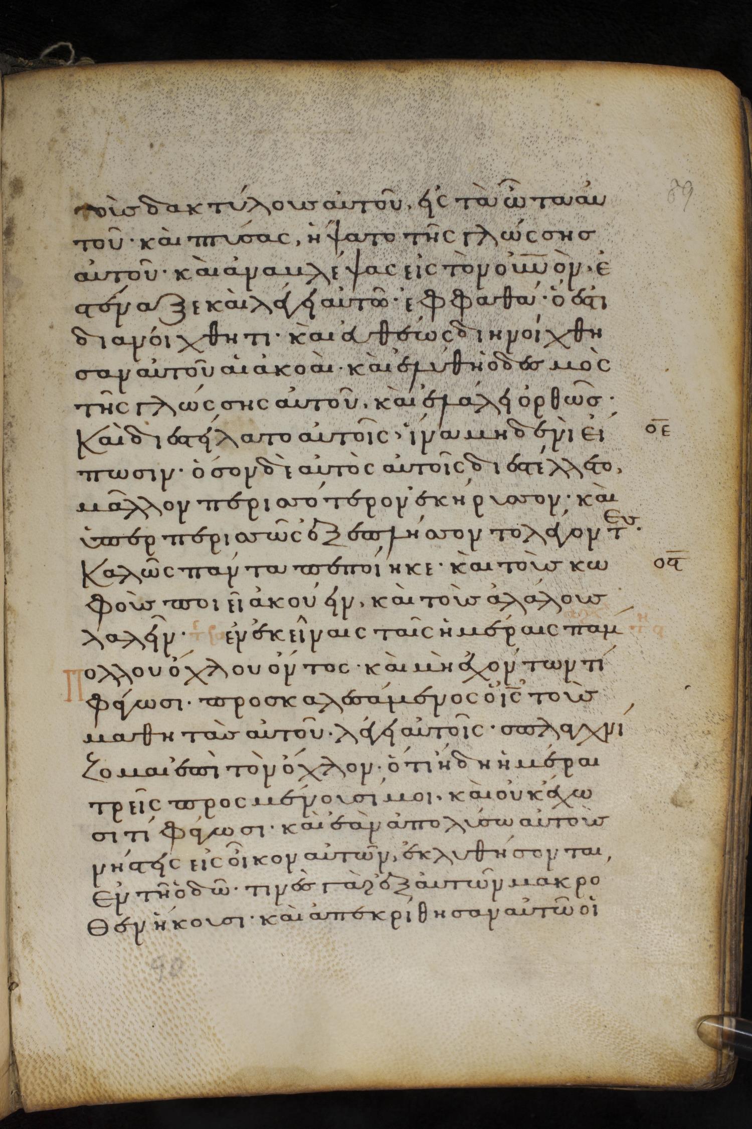 Thirteenth century minuscule of the Gospels on parchment; 237 leaves, 1 column, 23 lines per column. Images were taken at the National Library of Greece in Athens.