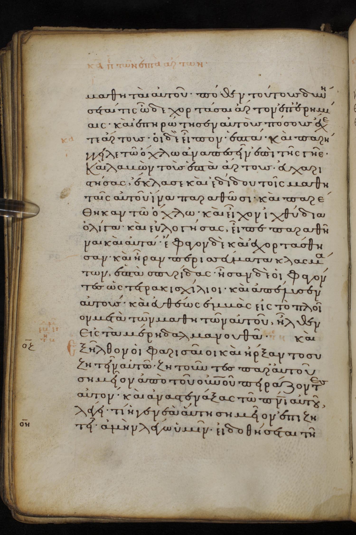 Thirteenth century minuscule of the Gospels on parchment; 237 leaves, 1 column, 23 lines per column. Images were taken at the National Library of Greece in Athens.