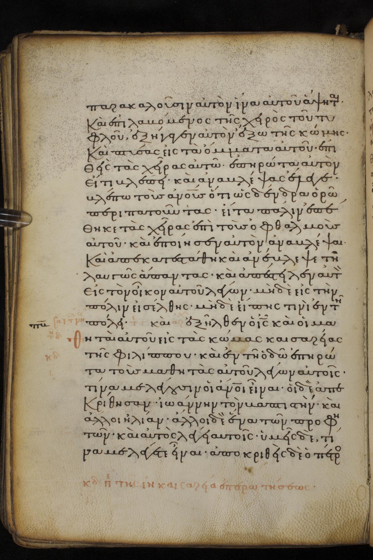 Thirteenth century minuscule of the Gospels on parchment; 237 leaves, 1 column, 23 lines per column. Images were taken at the National Library of Greece in Athens.