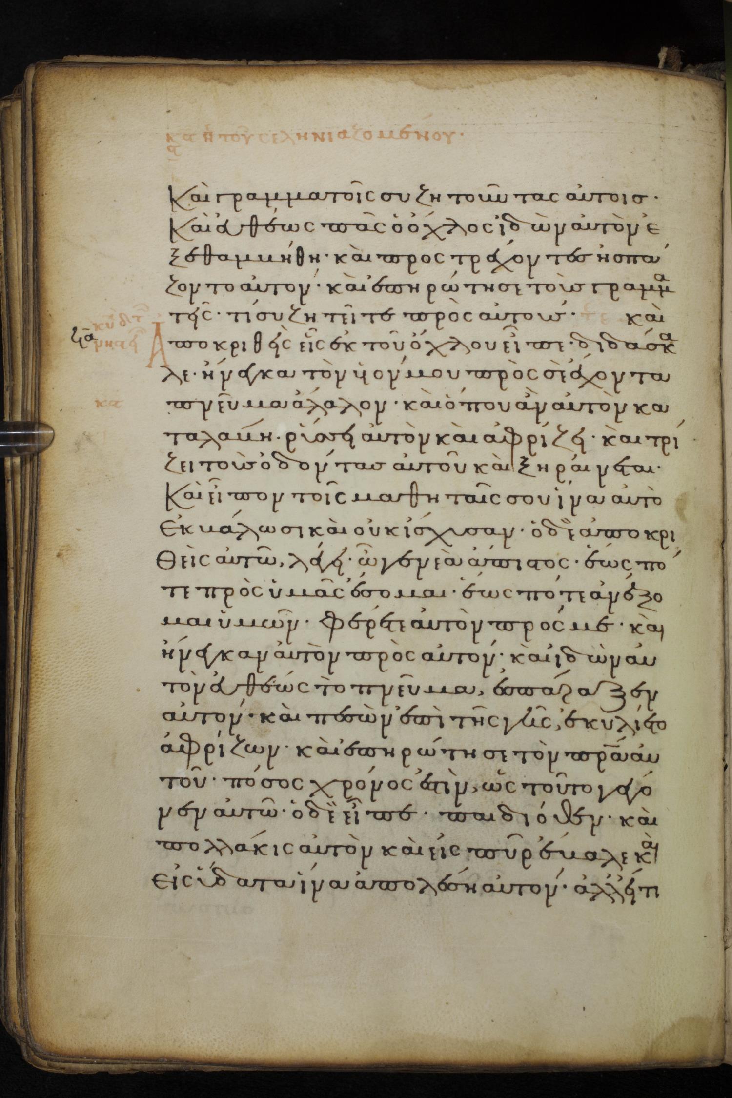Thirteenth century minuscule of the Gospels on parchment; 237 leaves, 1 column, 23 lines per column. Images were taken at the National Library of Greece in Athens.