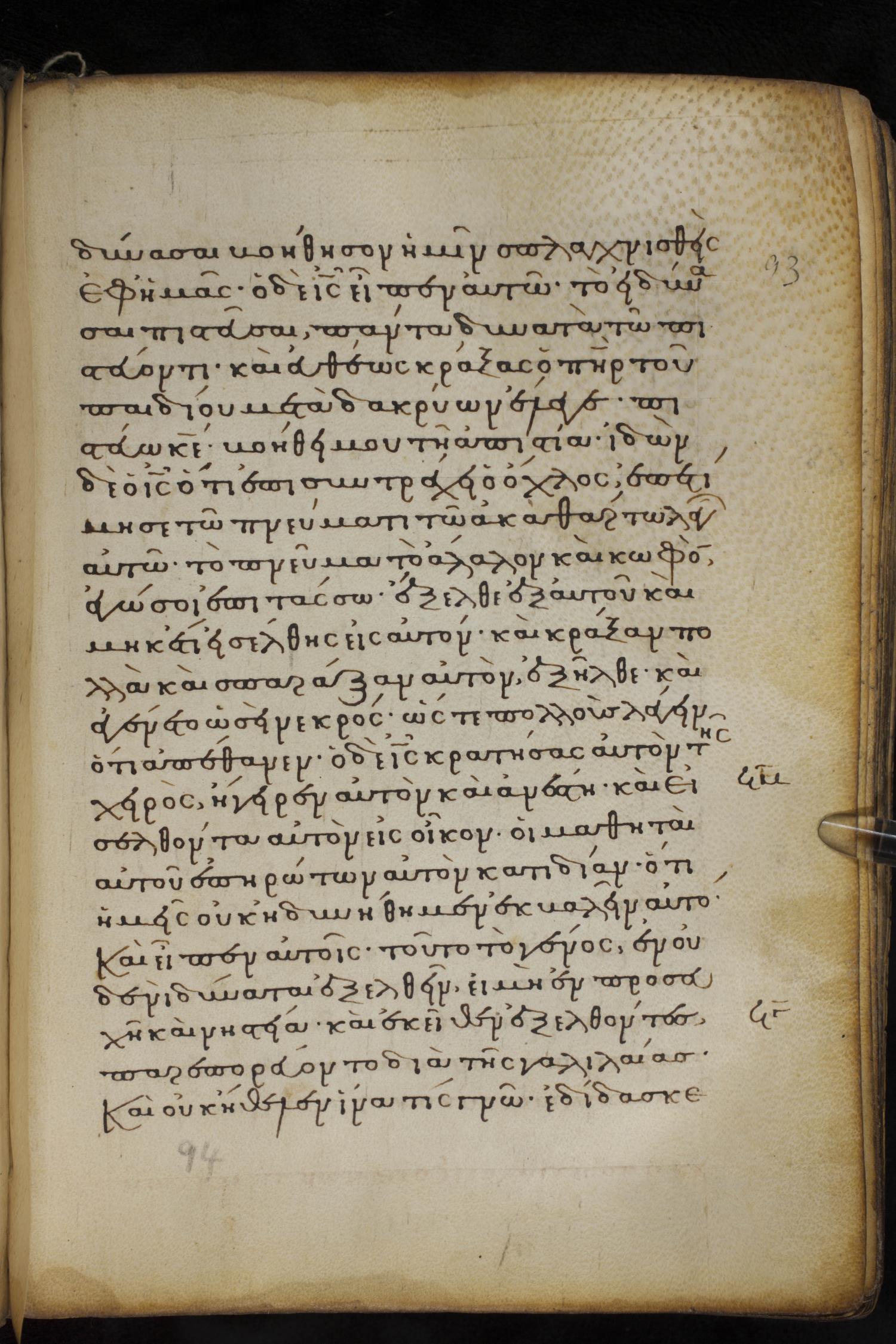 Thirteenth century minuscule of the Gospels on parchment; 237 leaves, 1 column, 23 lines per column. Images were taken at the National Library of Greece in Athens.