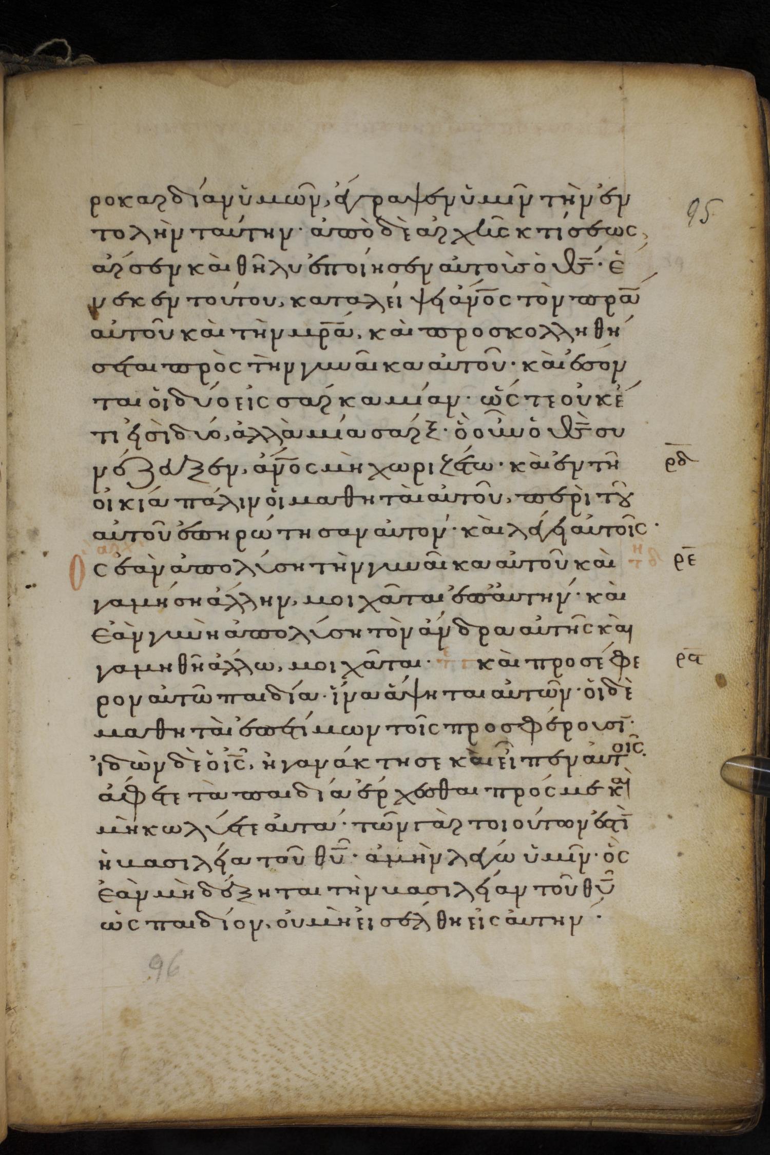 Thirteenth century minuscule of the Gospels on parchment; 237 leaves, 1 column, 23 lines per column. Images were taken at the National Library of Greece in Athens.