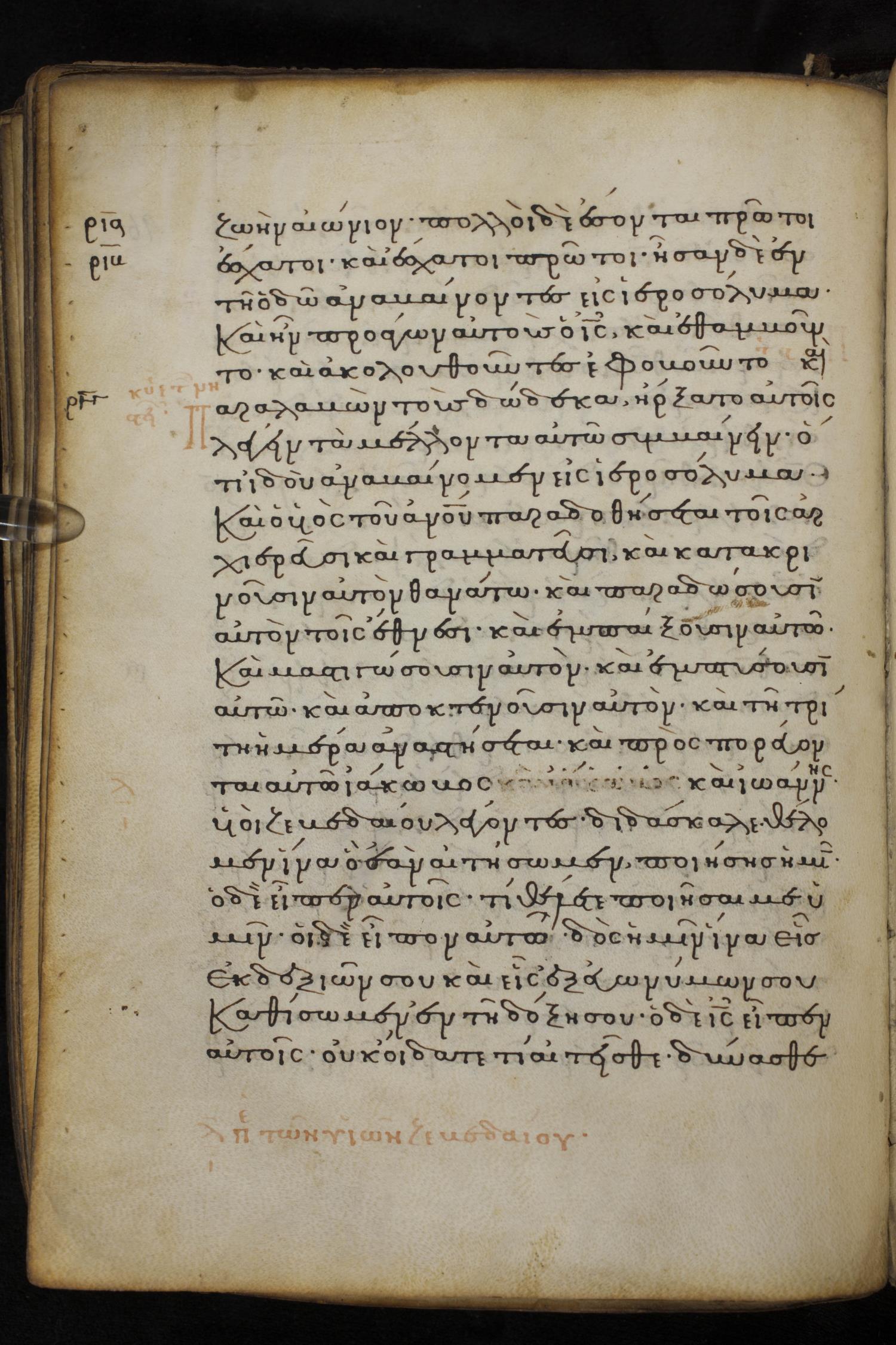 Thirteenth century minuscule of the Gospels on parchment; 237 leaves, 1 column, 23 lines per column. Images were taken at the National Library of Greece in Athens.