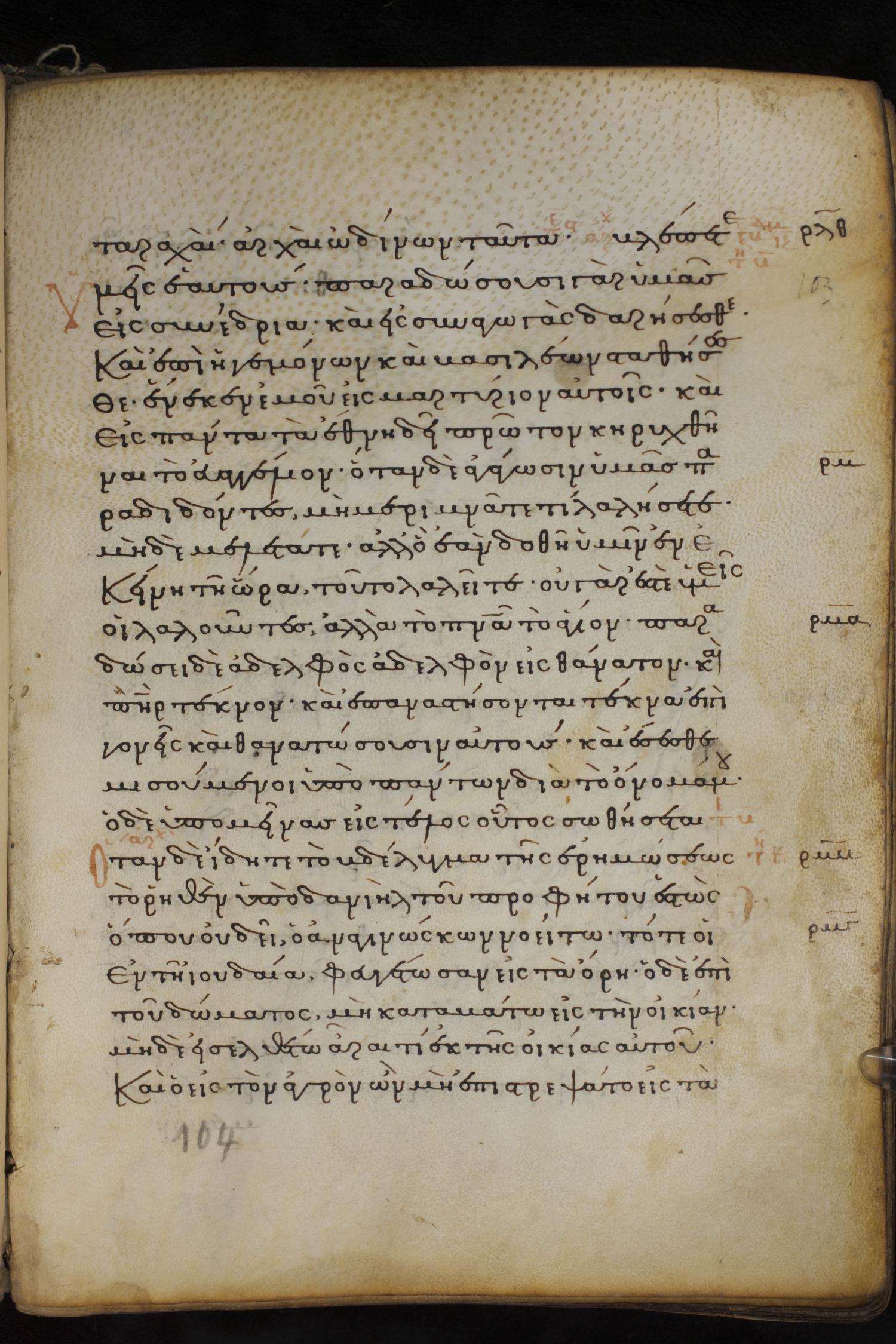 Thirteenth century minuscule of the Gospels on parchment; 237 leaves, 1 column, 23 lines per column. Images were taken at the National Library of Greece in Athens.
