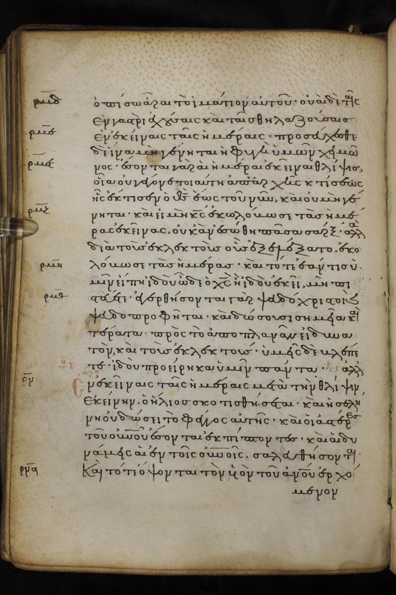 Thirteenth century minuscule of the Gospels on parchment; 237 leaves, 1 column, 23 lines per column. Images were taken at the National Library of Greece in Athens.