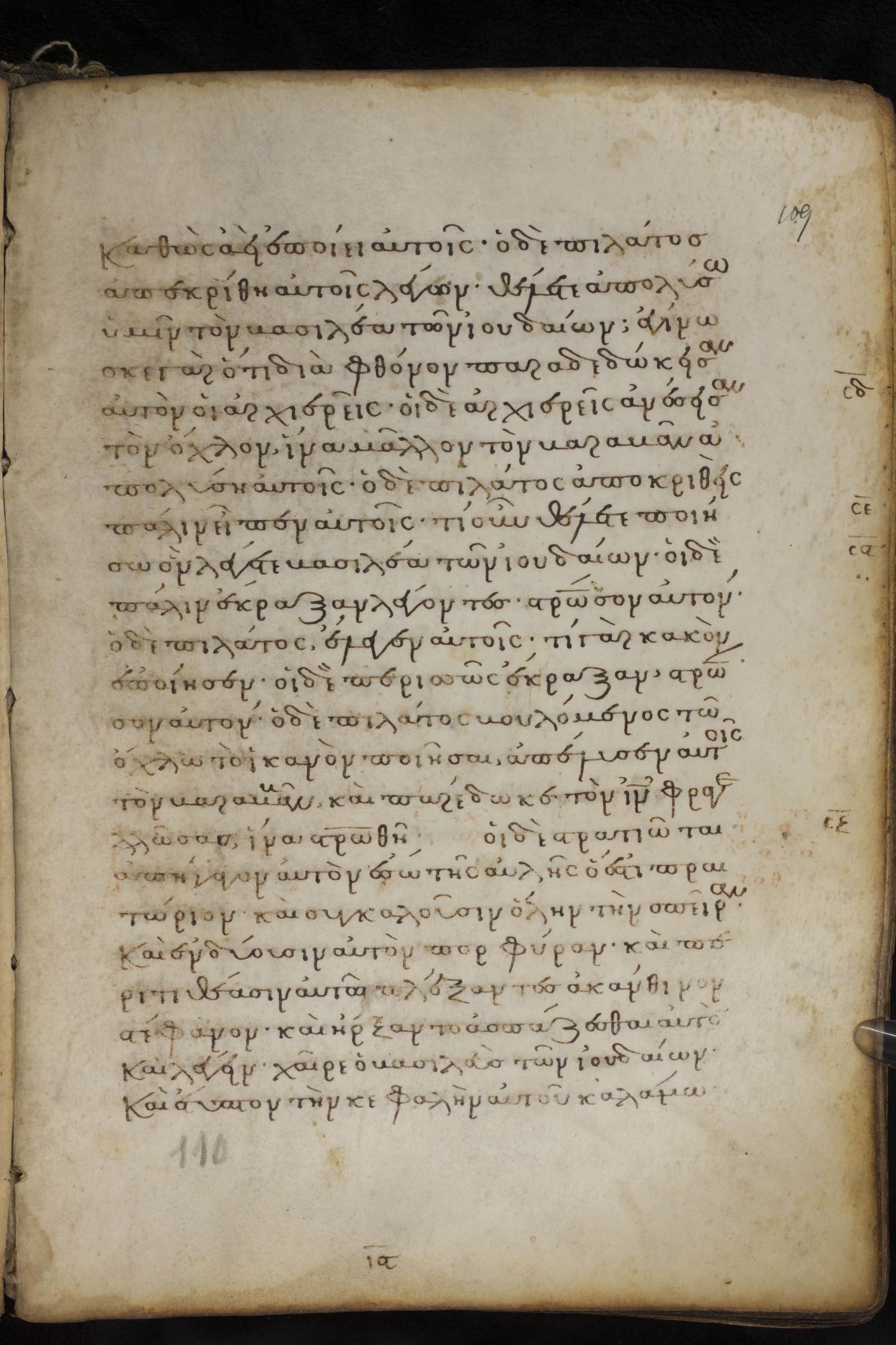 Thirteenth century minuscule of the Gospels on parchment; 237 leaves, 1 column, 23 lines per column. Images were taken at the National Library of Greece in Athens.