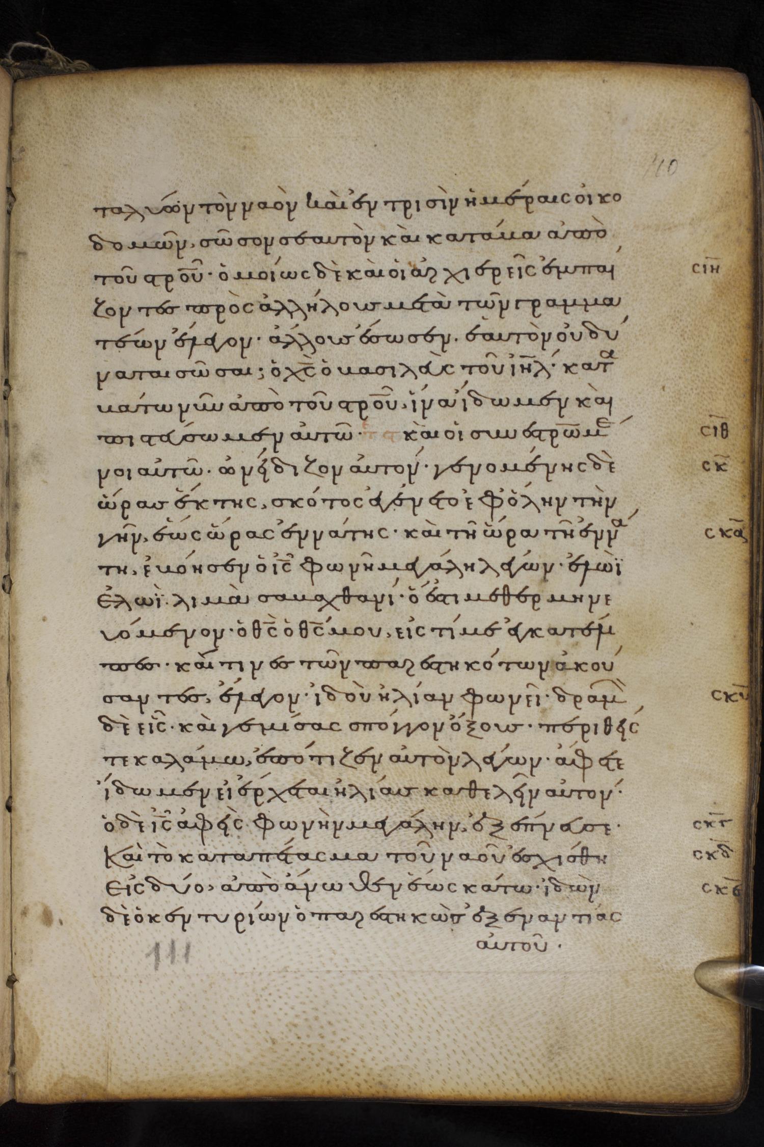 Thirteenth century minuscule of the Gospels on parchment; 237 leaves, 1 column, 23 lines per column. Images were taken at the National Library of Greece in Athens.