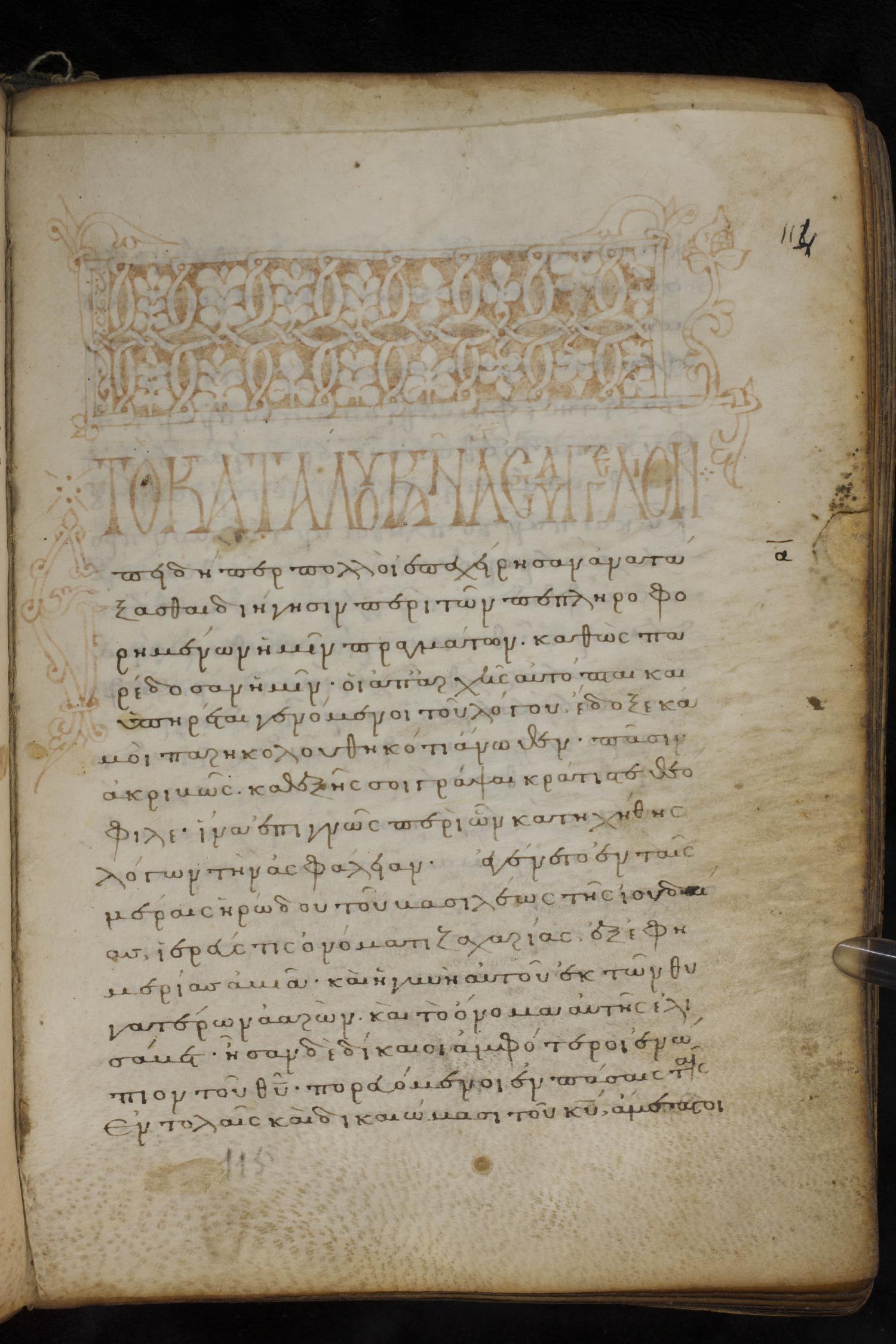 Thirteenth century minuscule of the Gospels on parchment; 237 leaves, 1 column, 23 lines per column. Images were taken at the National Library of Greece in Athens.