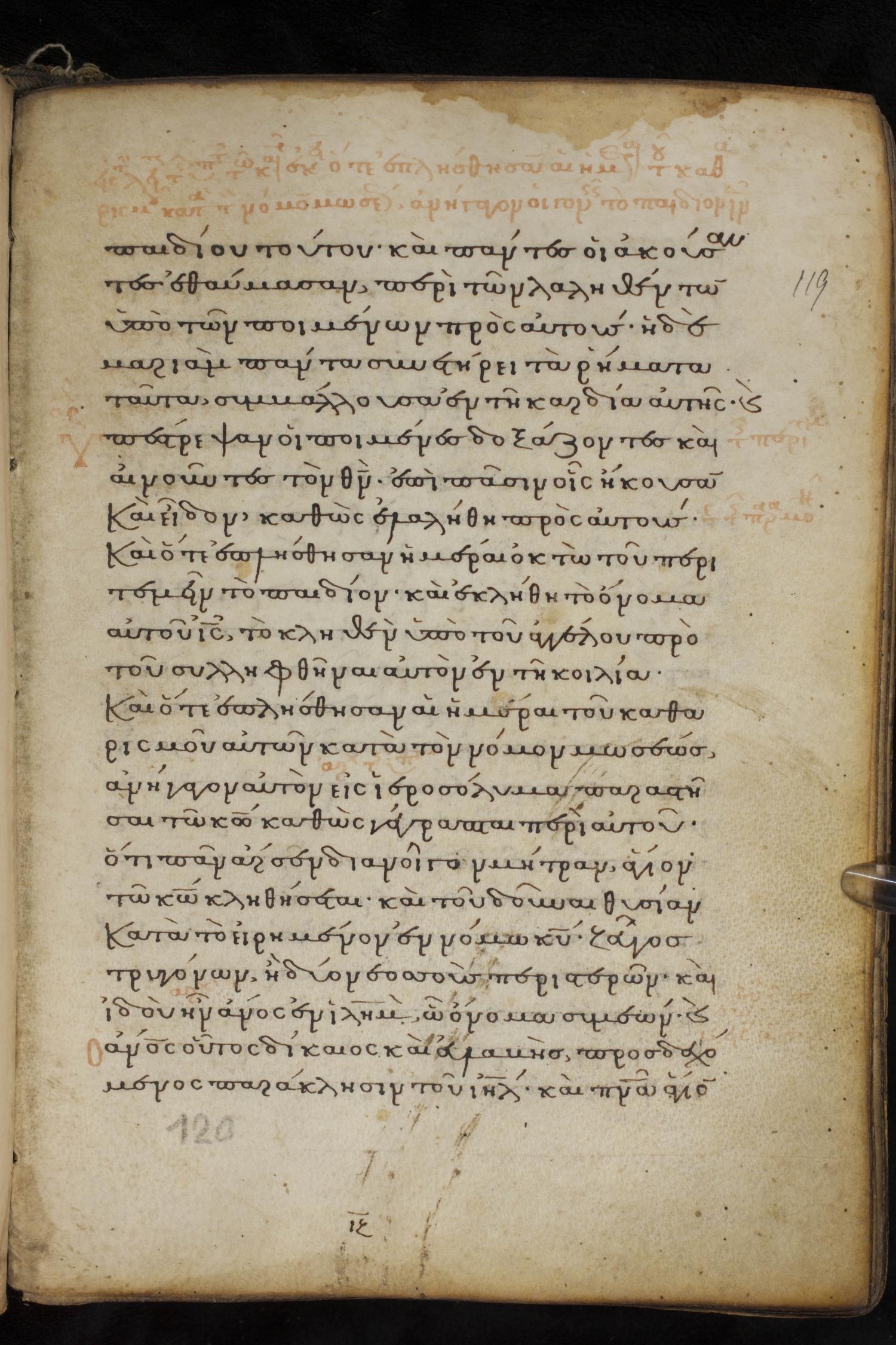 Thirteenth century minuscule of the Gospels on parchment; 237 leaves, 1 column, 23 lines per column. Images were taken at the National Library of Greece in Athens.