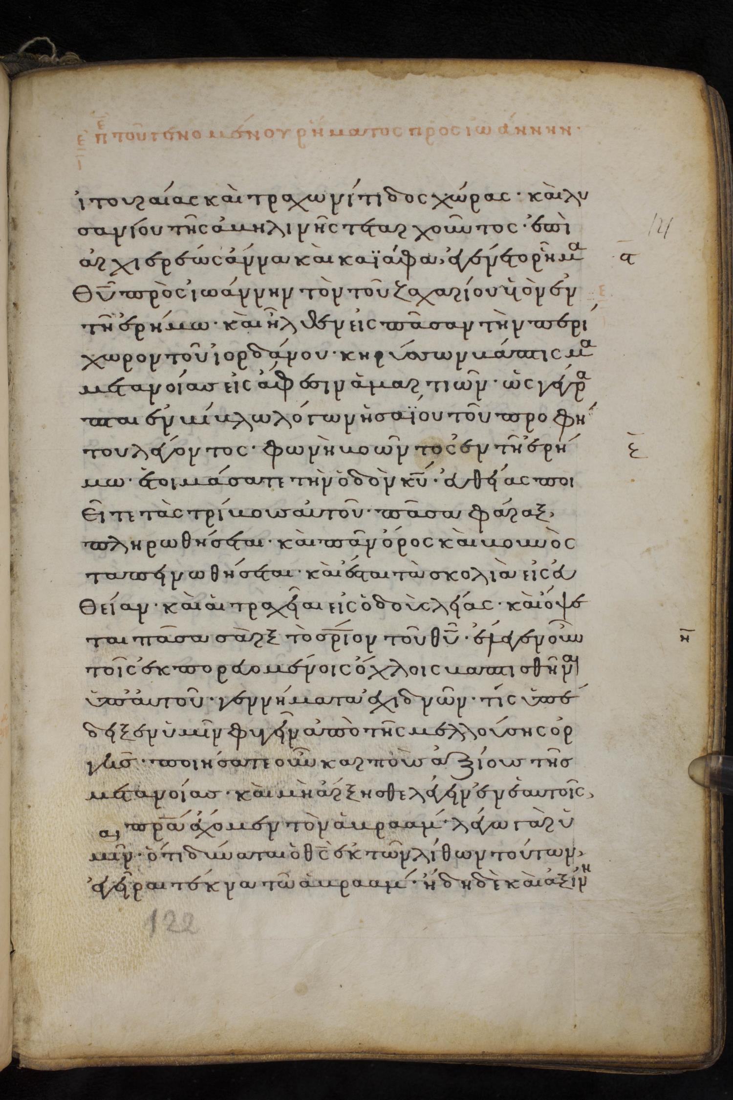 Thirteenth century minuscule of the Gospels on parchment; 237 leaves, 1 column, 23 lines per column. Images were taken at the National Library of Greece in Athens.