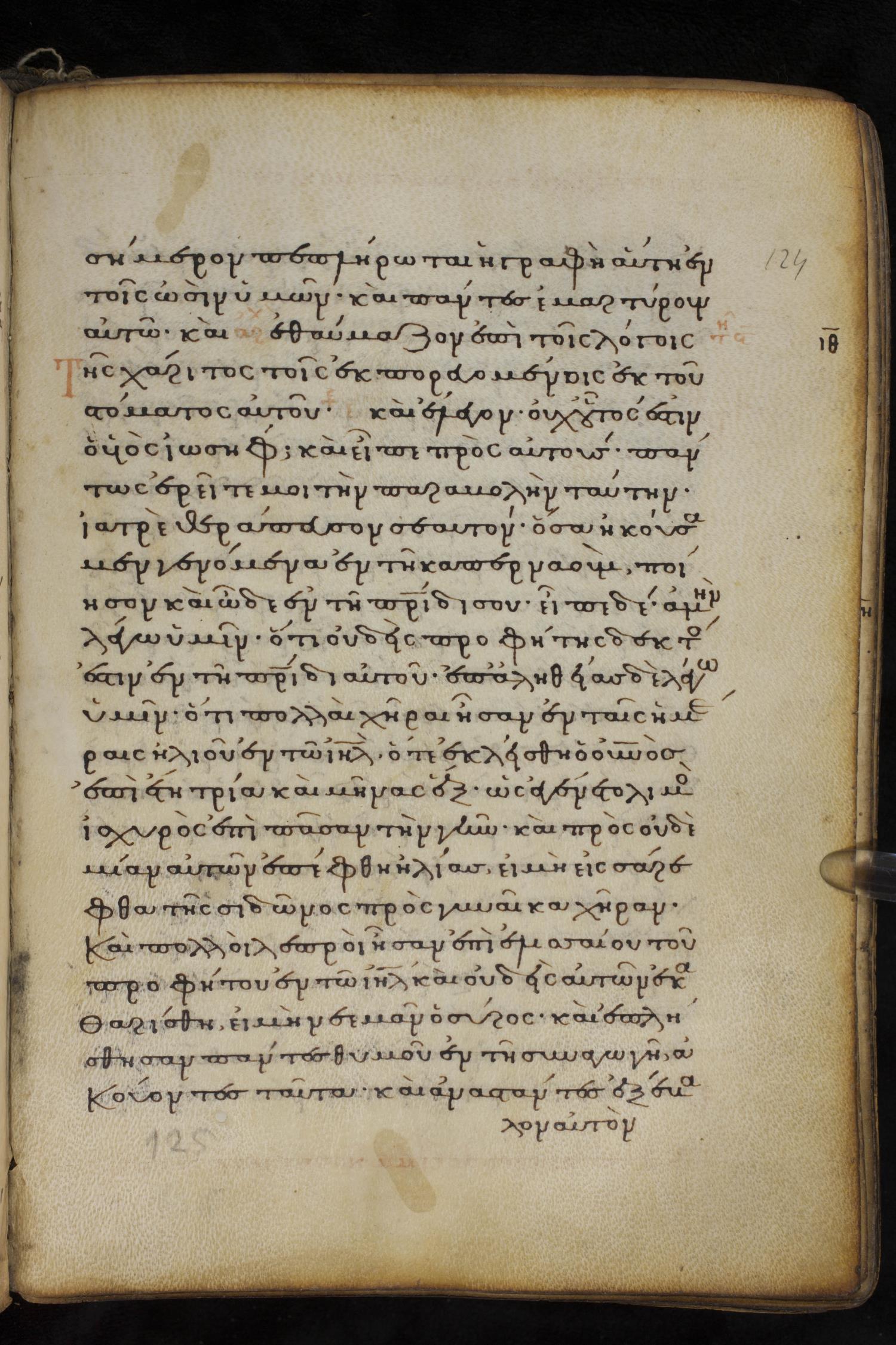 Thirteenth century minuscule of the Gospels on parchment; 237 leaves, 1 column, 23 lines per column. Images were taken at the National Library of Greece in Athens.