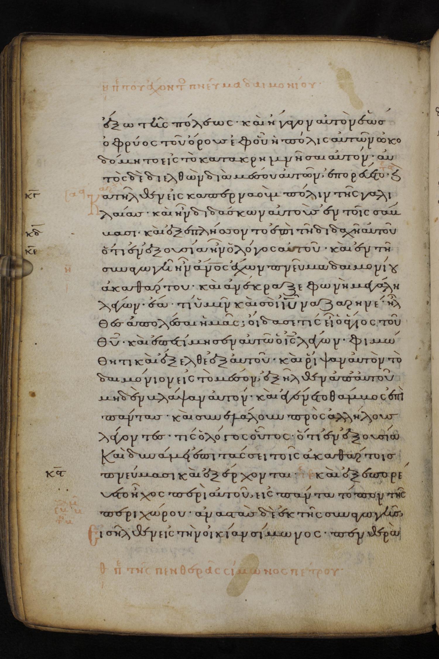 Thirteenth century minuscule of the Gospels on parchment; 237 leaves, 1 column, 23 lines per column. Images were taken at the National Library of Greece in Athens.