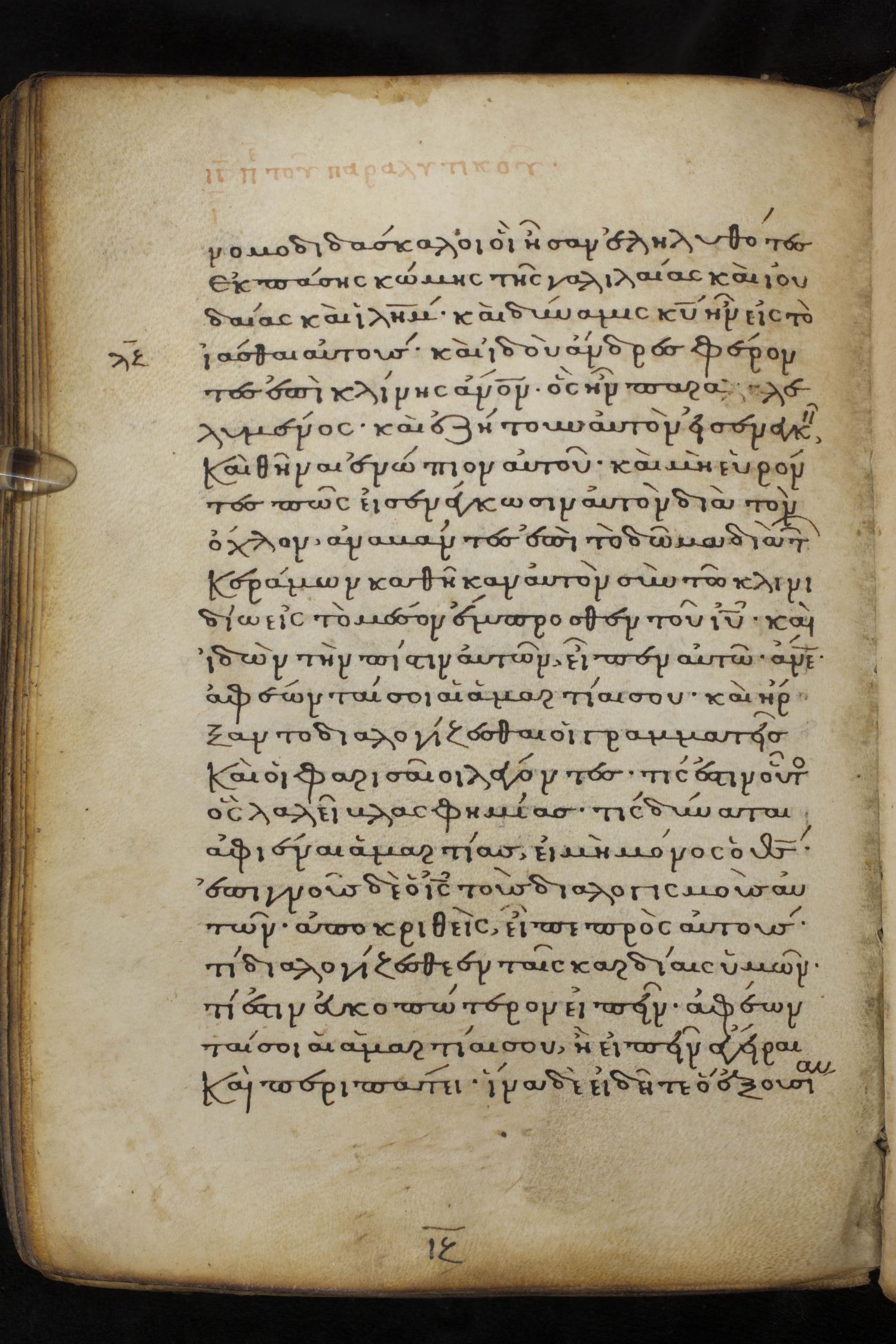 Thirteenth century minuscule of the Gospels on parchment; 237 leaves, 1 column, 23 lines per column. Images were taken at the National Library of Greece in Athens.