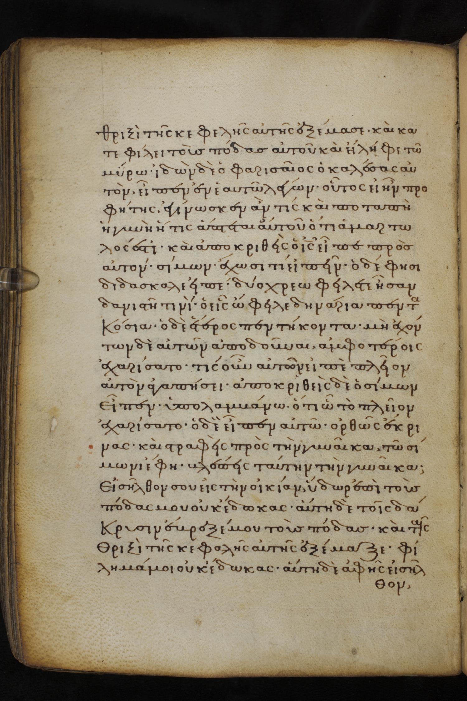 Thirteenth century minuscule of the Gospels on parchment; 237 leaves, 1 column, 23 lines per column. Images were taken at the National Library of Greece in Athens.