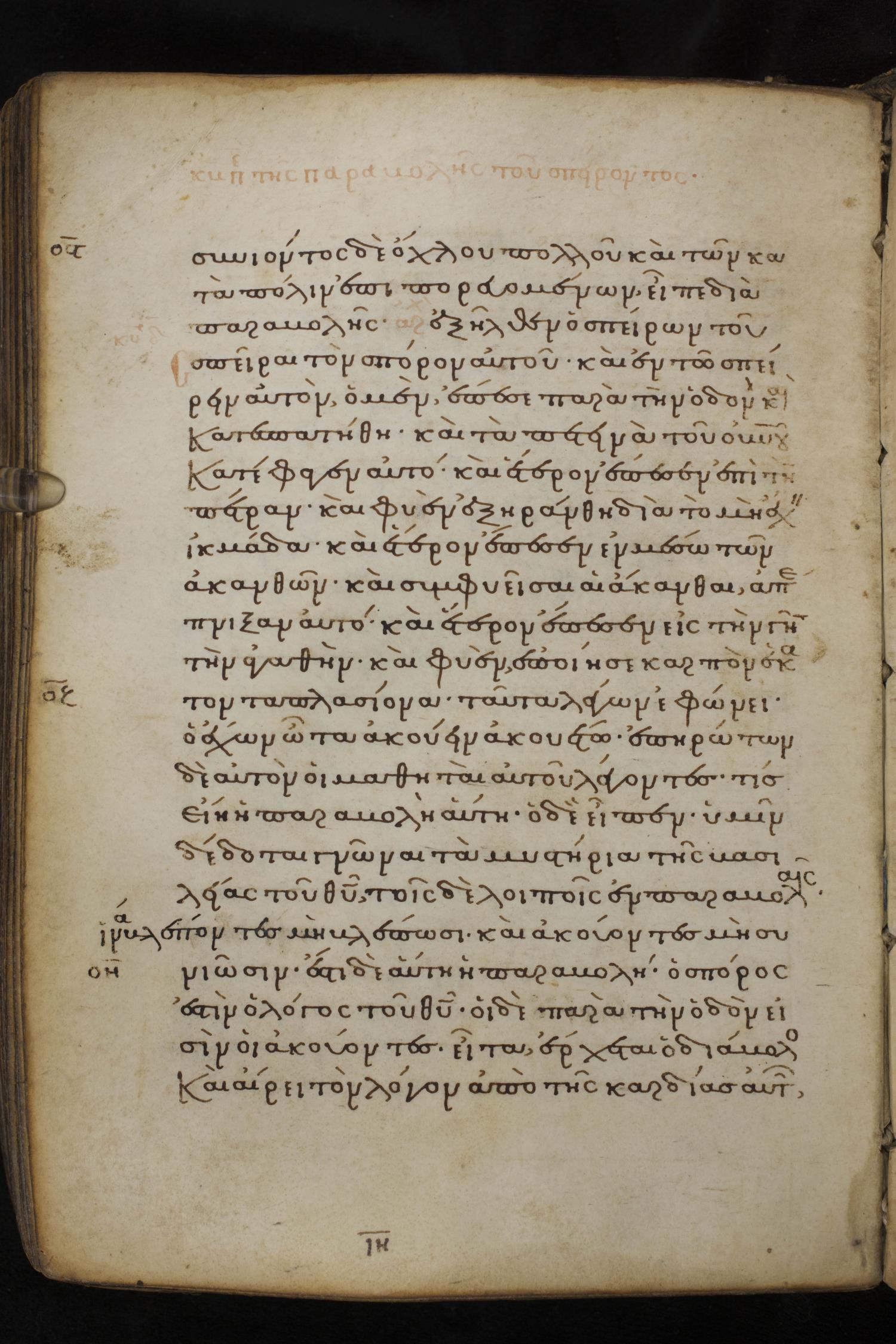 Thirteenth century minuscule of the Gospels on parchment; 237 leaves, 1 column, 23 lines per column. Images were taken at the National Library of Greece in Athens.