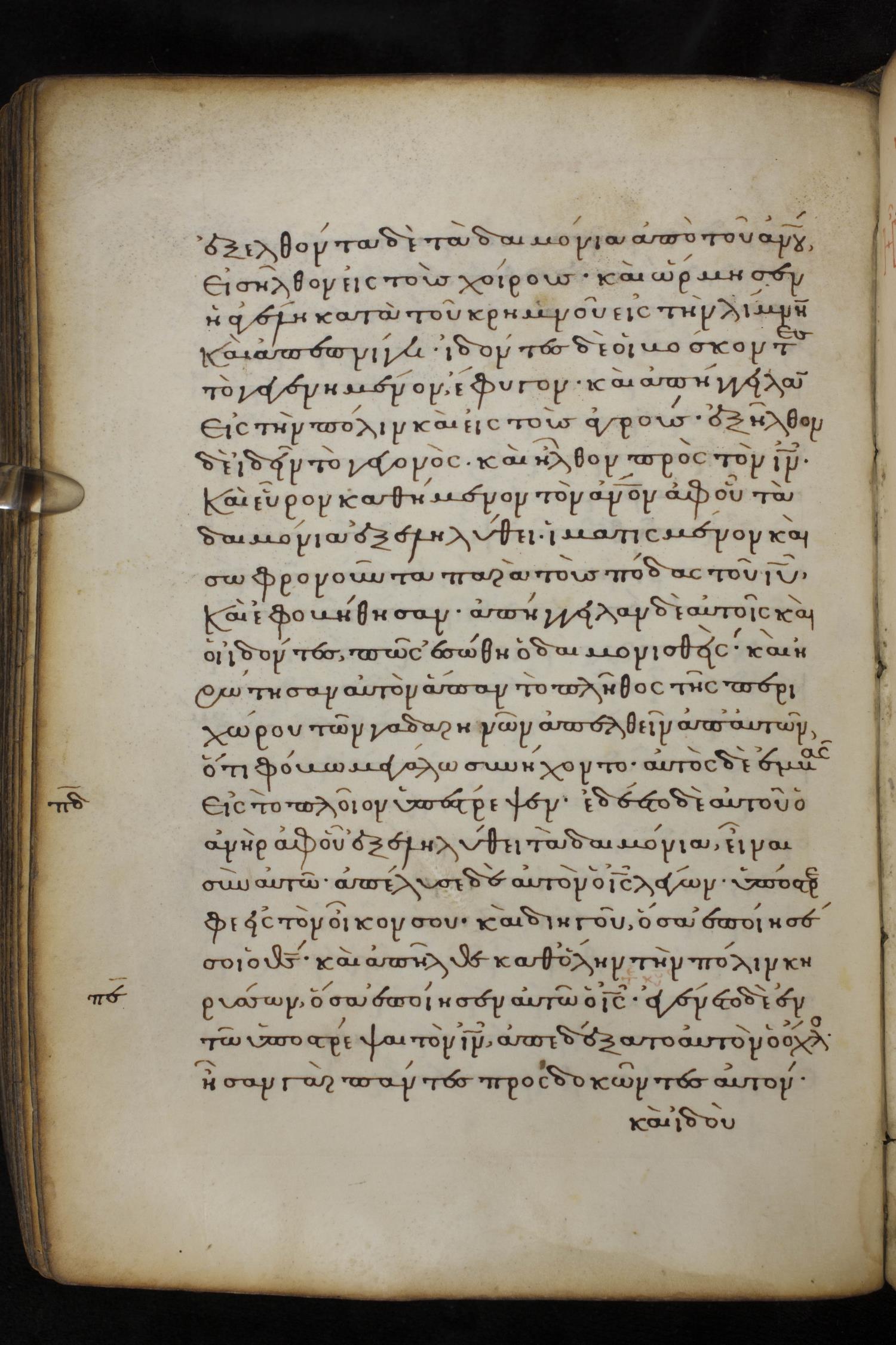 Thirteenth century minuscule of the Gospels on parchment; 237 leaves, 1 column, 23 lines per column. Images were taken at the National Library of Greece in Athens.