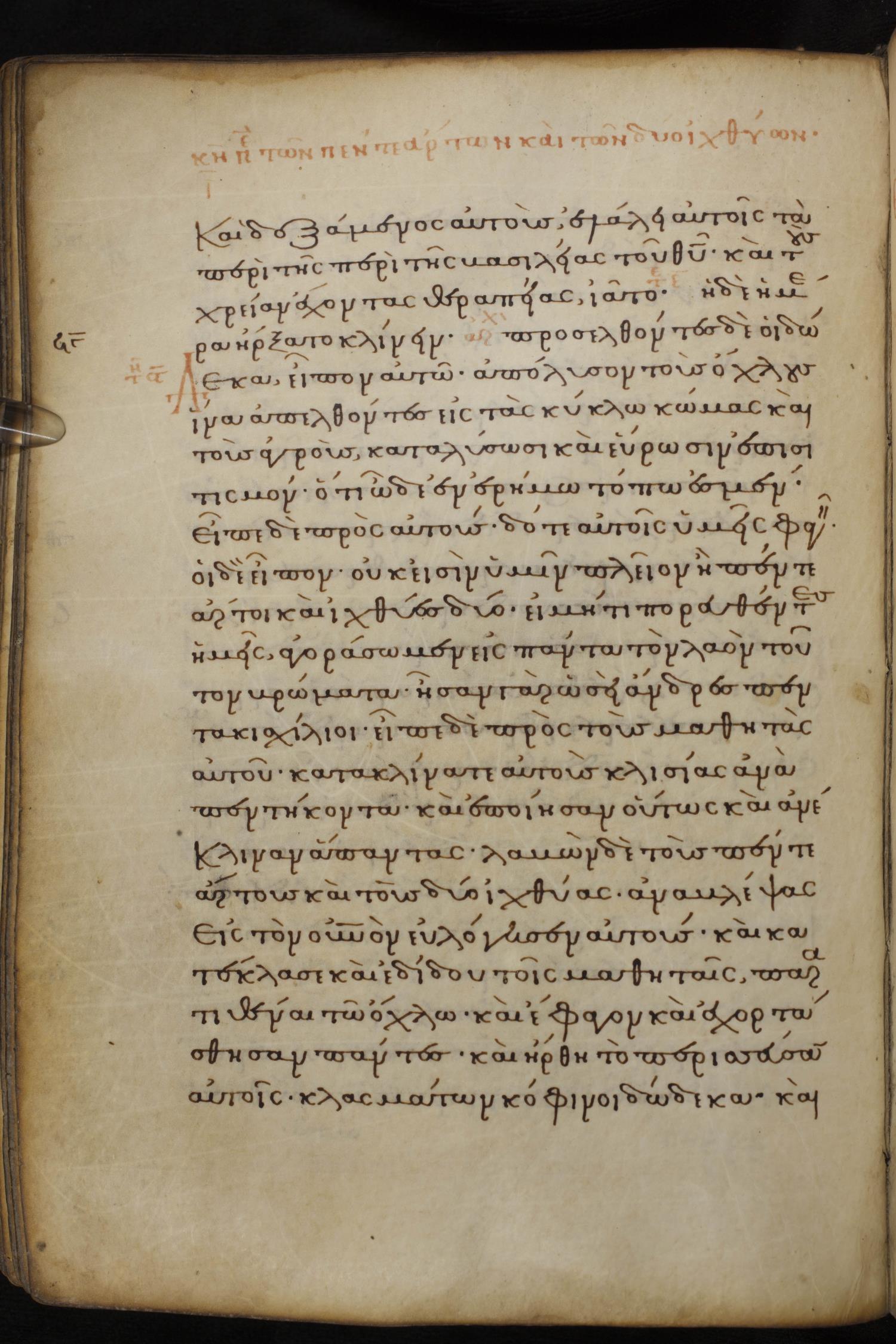 Thirteenth century minuscule of the Gospels on parchment; 237 leaves, 1 column, 23 lines per column. Images were taken at the National Library of Greece in Athens.