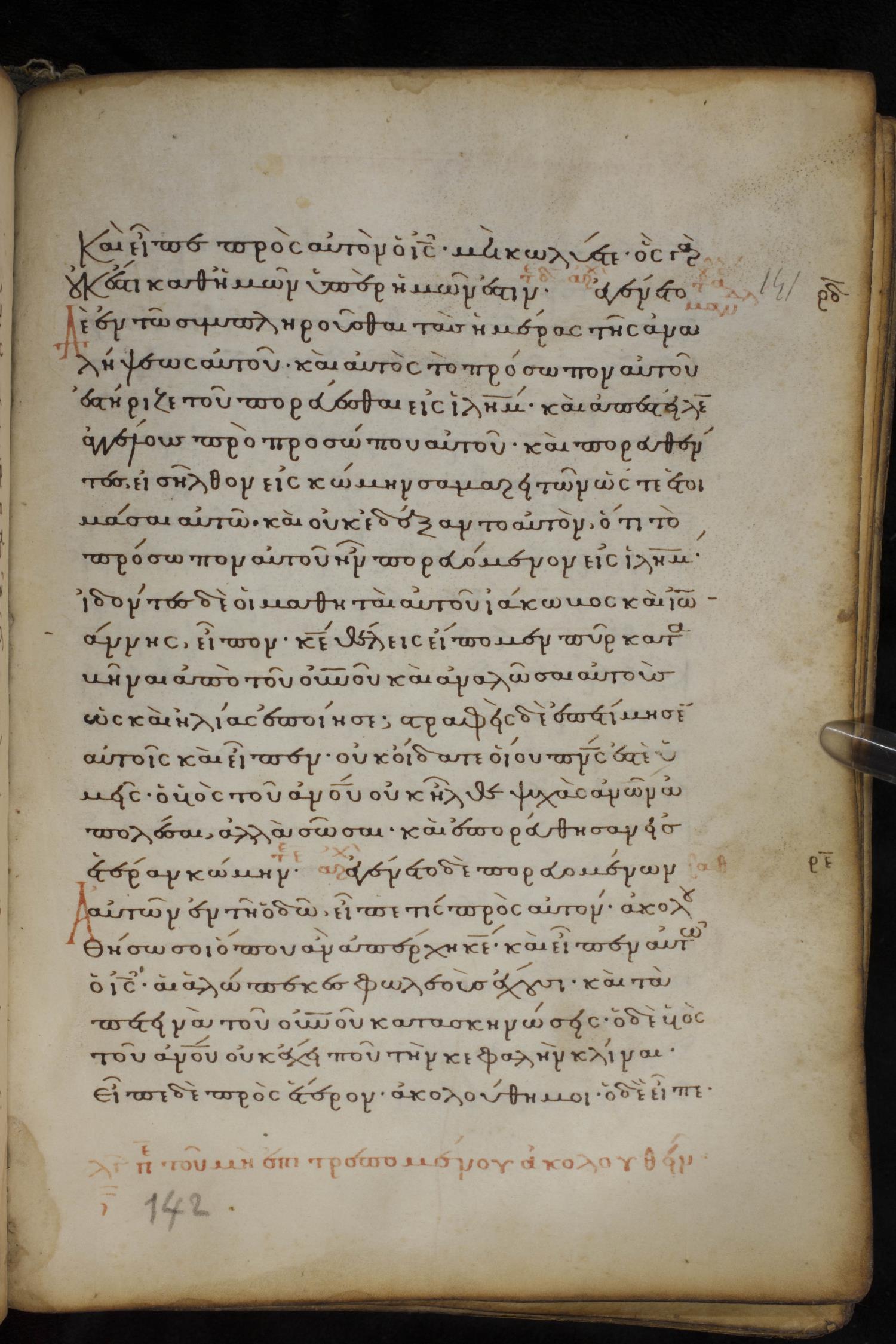 Thirteenth century minuscule of the Gospels on parchment; 237 leaves, 1 column, 23 lines per column. Images were taken at the National Library of Greece in Athens.