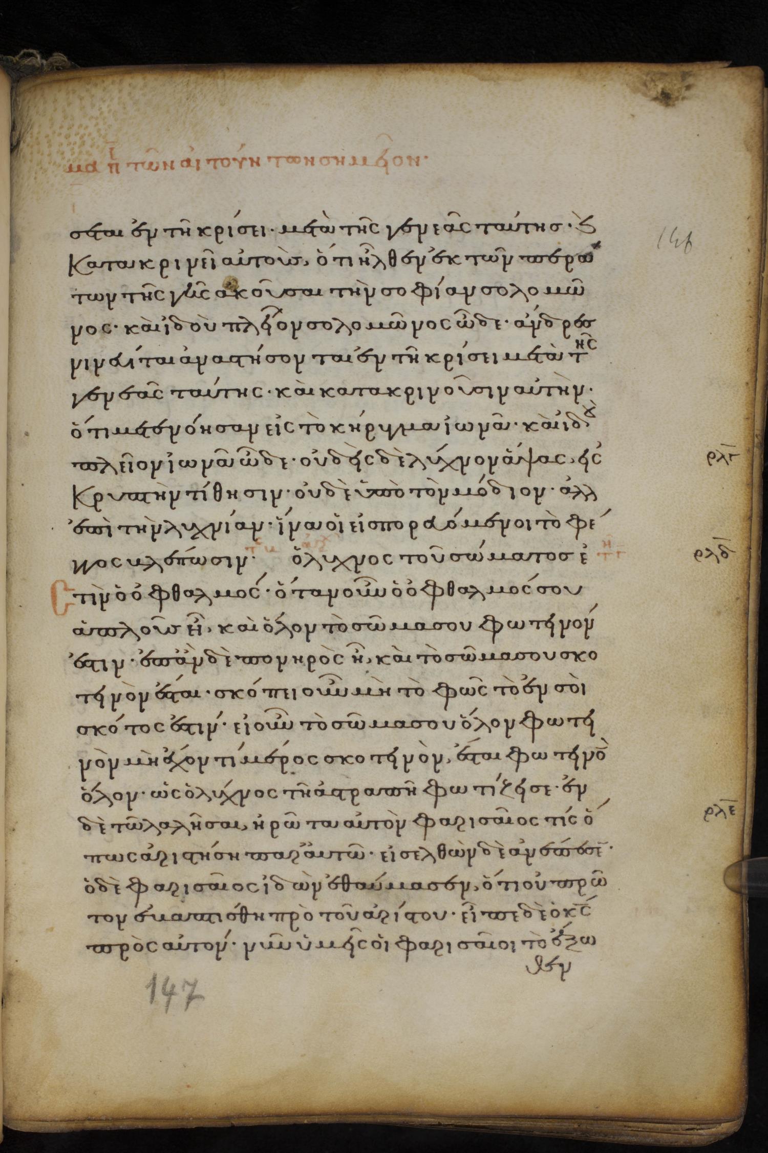 Thirteenth century minuscule of the Gospels on parchment; 237 leaves, 1 column, 23 lines per column. Images were taken at the National Library of Greece in Athens.