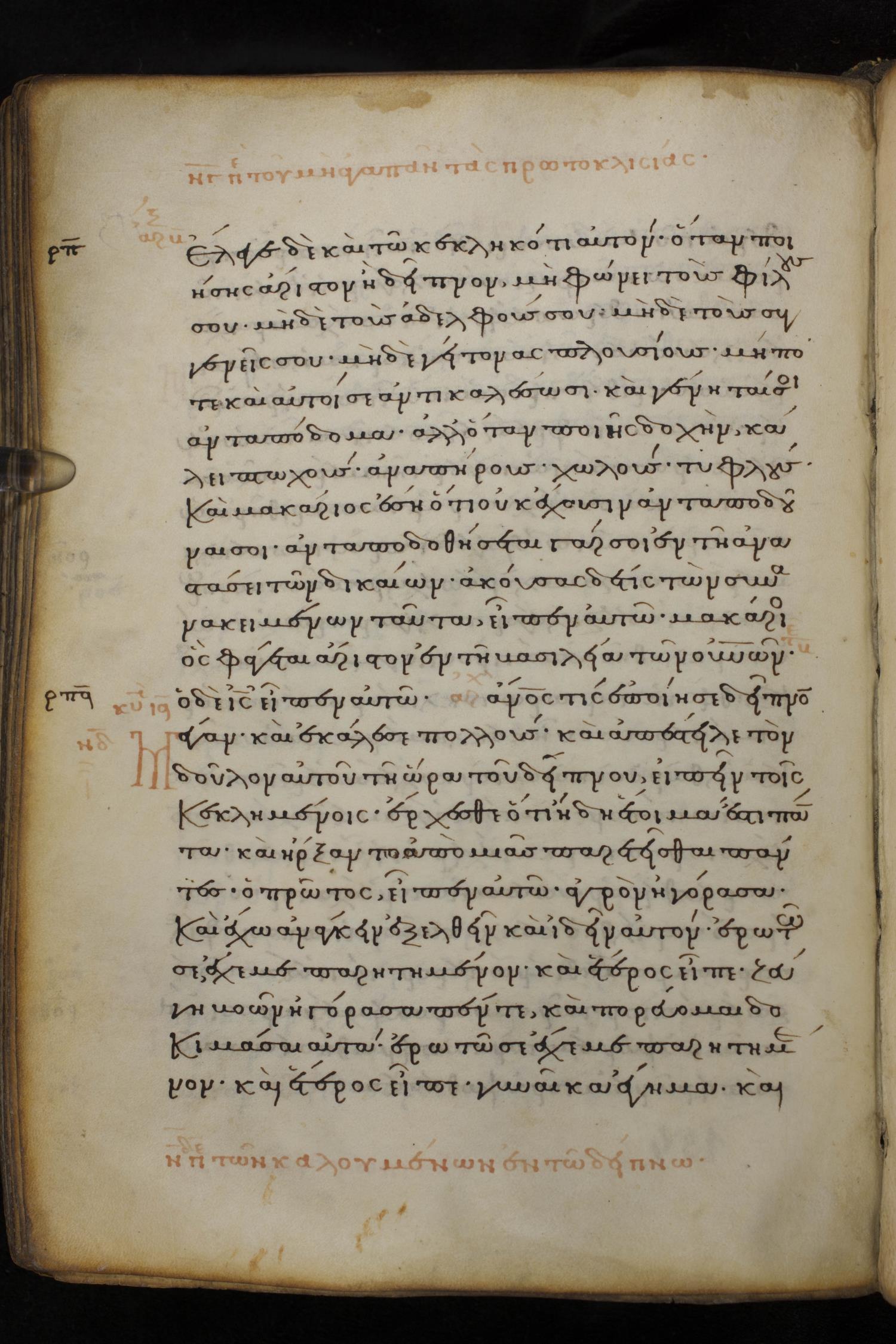 Thirteenth century minuscule of the Gospels on parchment; 237 leaves, 1 column, 23 lines per column. Images were taken at the National Library of Greece in Athens.