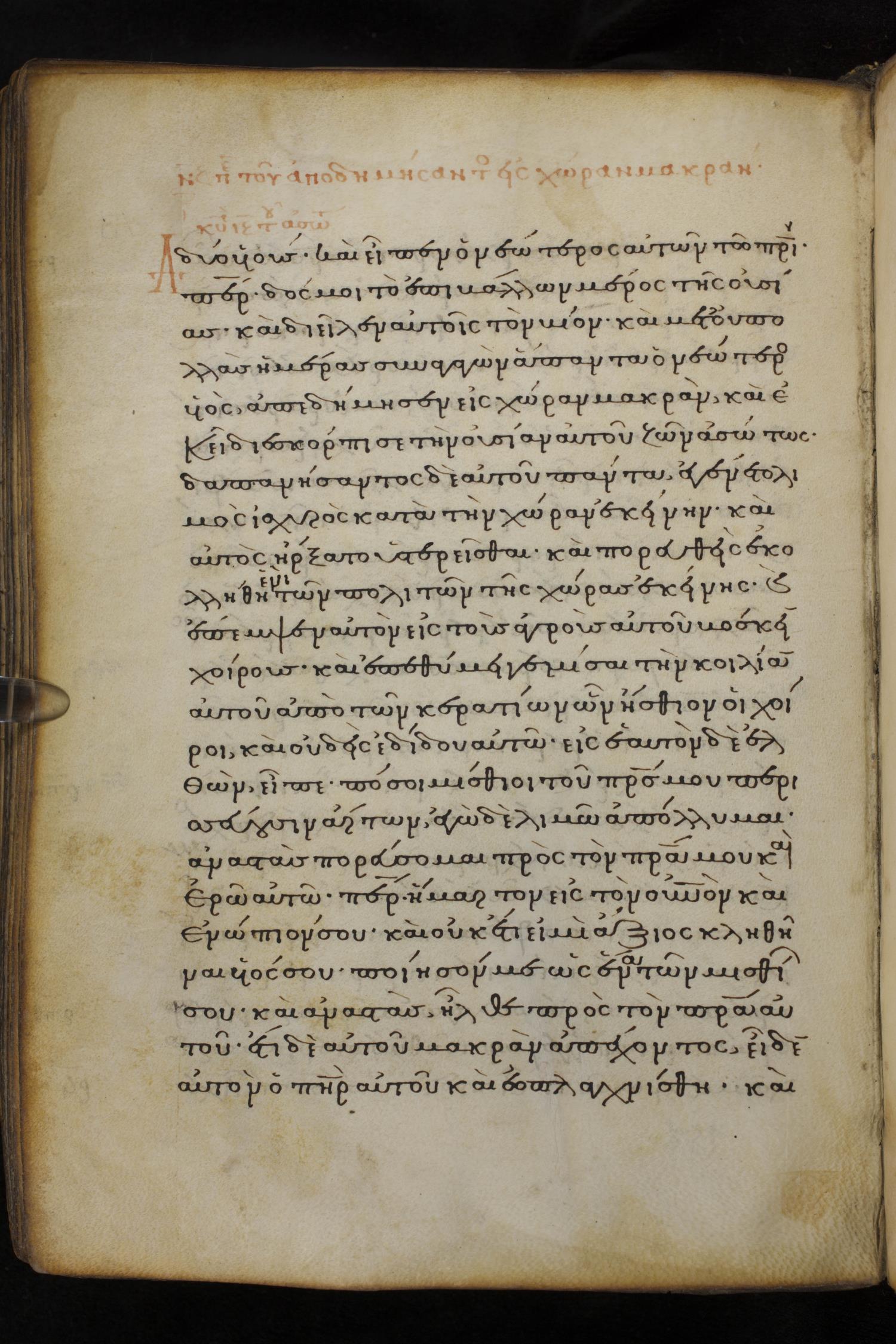 Thirteenth century minuscule of the Gospels on parchment; 237 leaves, 1 column, 23 lines per column. Images were taken at the National Library of Greece in Athens.
