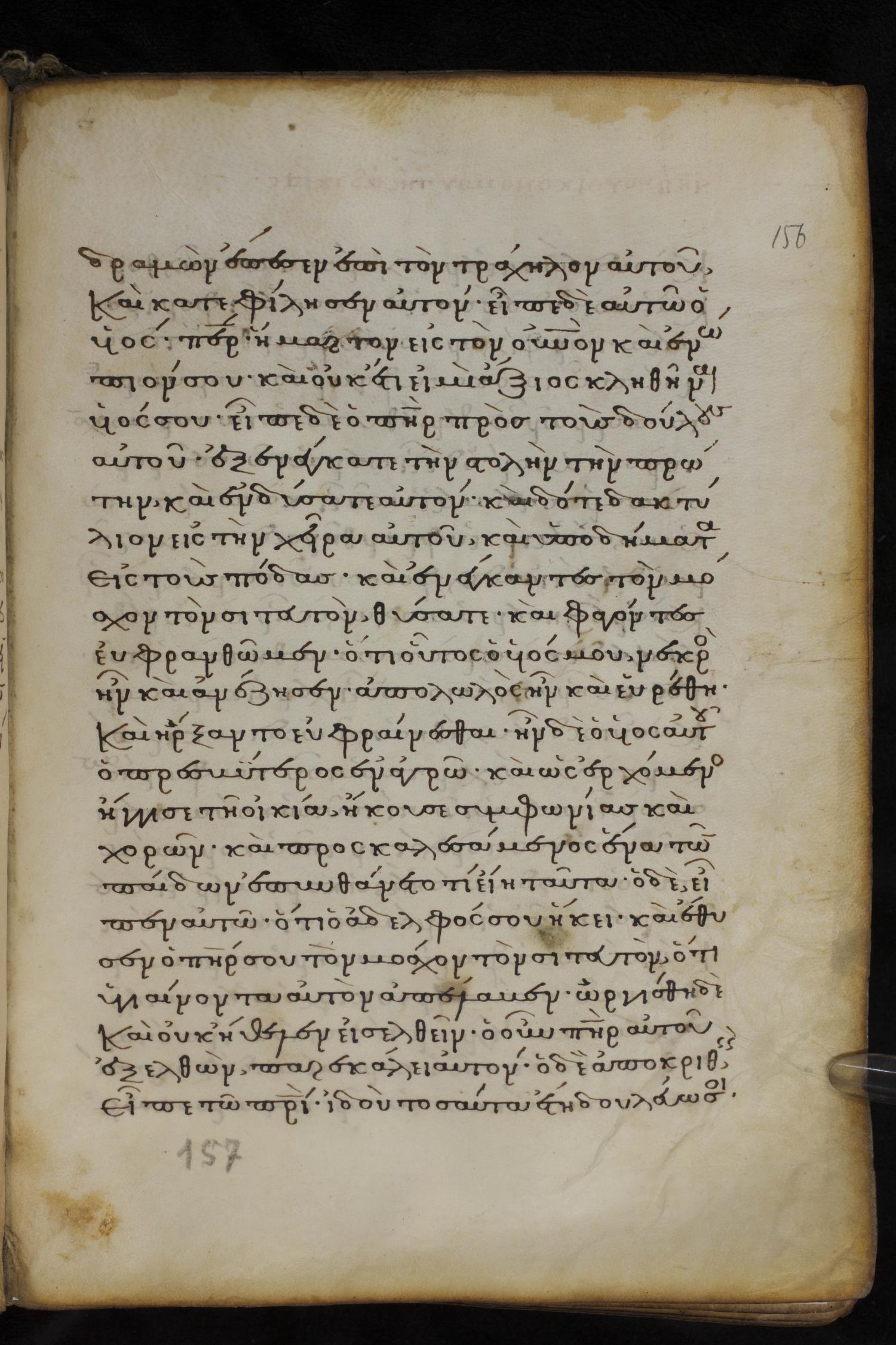 Thirteenth century minuscule of the Gospels on parchment; 237 leaves, 1 column, 23 lines per column. Images were taken at the National Library of Greece in Athens.
