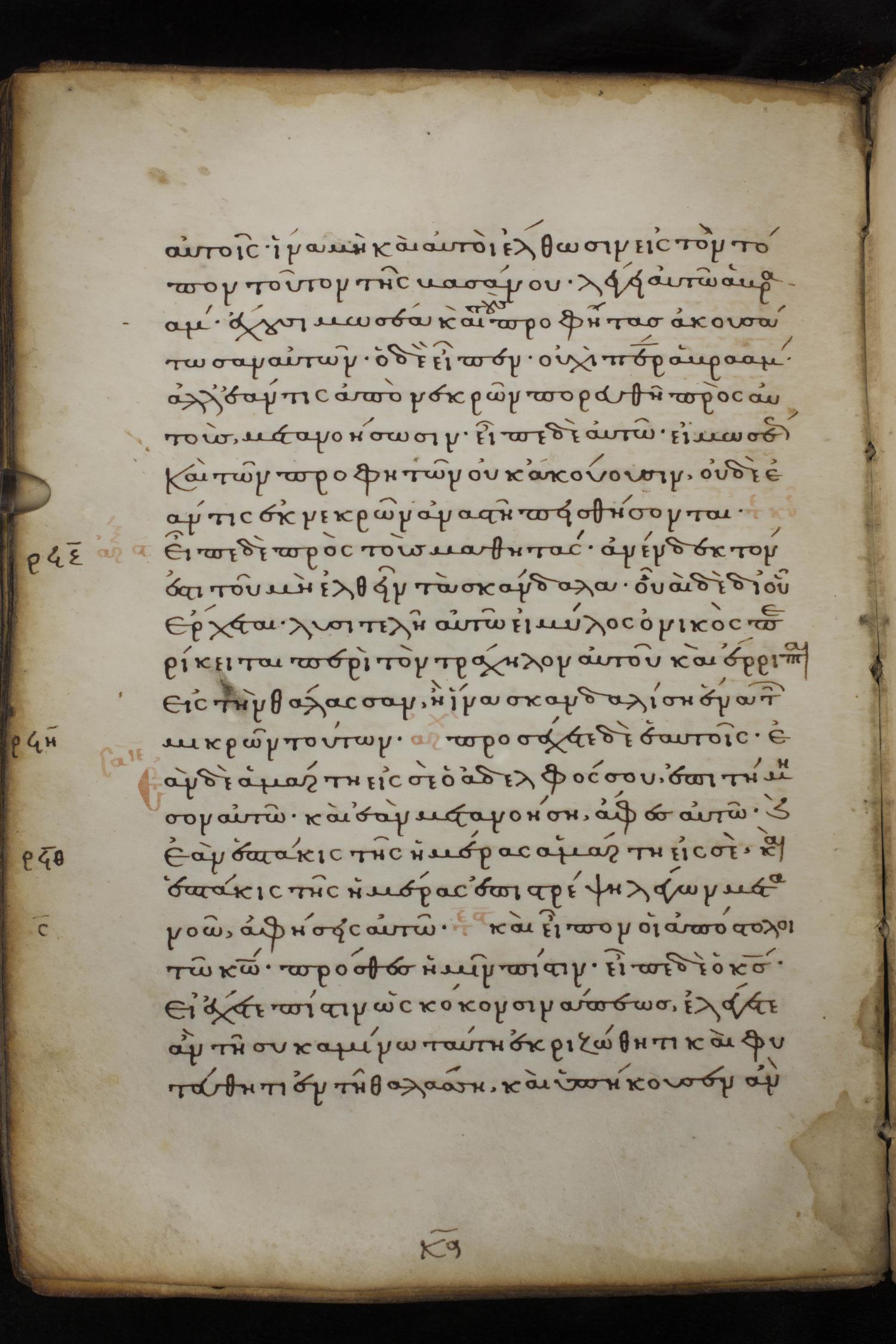 Thirteenth century minuscule of the Gospels on parchment; 237 leaves, 1 column, 23 lines per column. Images were taken at the National Library of Greece in Athens.
